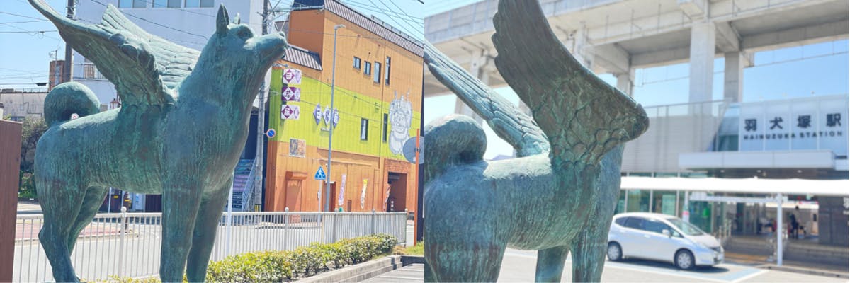 ①昔この地に羽の生えたどう猛な犬がいたというものです。「羽犬は旅人を襲ったり家畜を食い殺したりして住民から恐れられていた。天正15年(1587年)4月、天下統一をめざす豊臣秀吉は薩摩(さつま)の島津氏討伐のため九州に遠征、この時羽犬によって行く手を阻まれた。大軍を繰り出しやっとの思いでそれを退治した秀吉は、羽犬の賢さと強さに感心し、この犬のために塚をつくり丁寧に葬った」