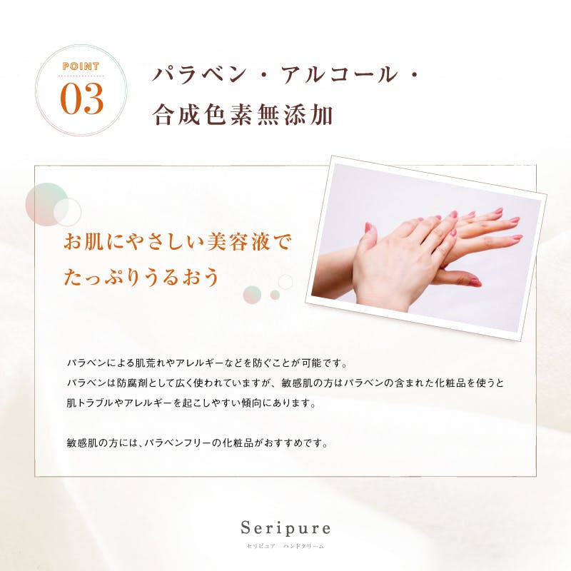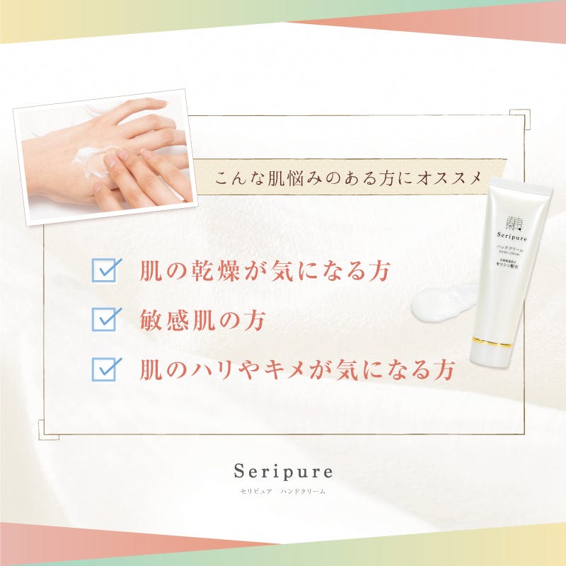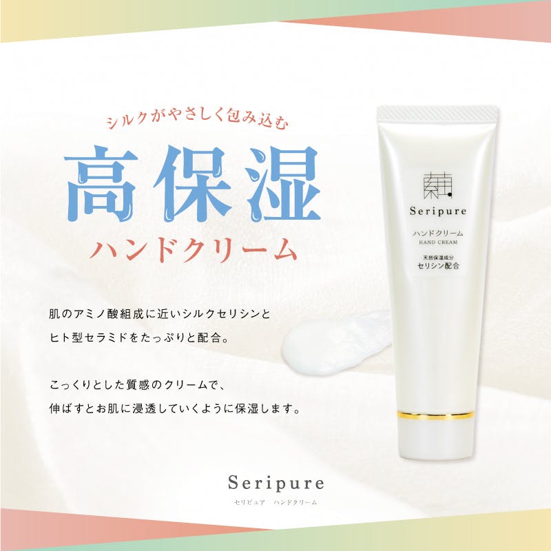 シルクがやさしく包み込む高保湿クリーム 「セリピュア」ハンドクリームです。