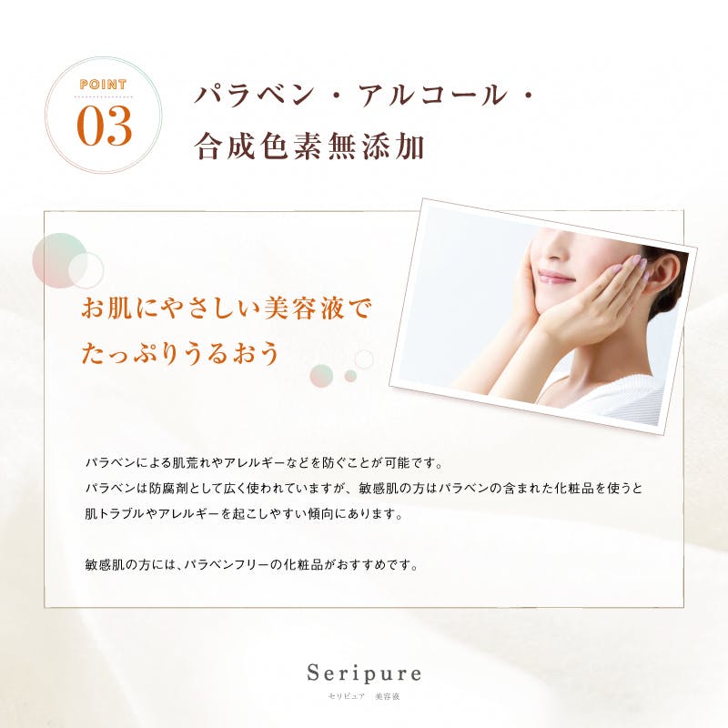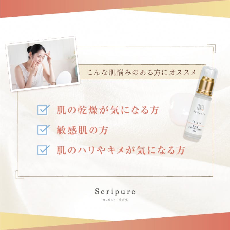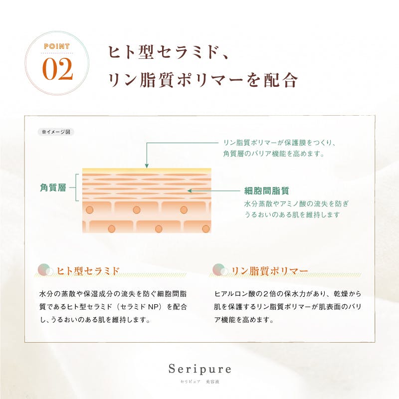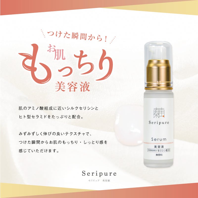 つけた瞬間からお肌のもっちり感を実感できる美容液「セリピュア」美容液です。