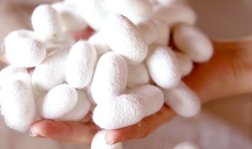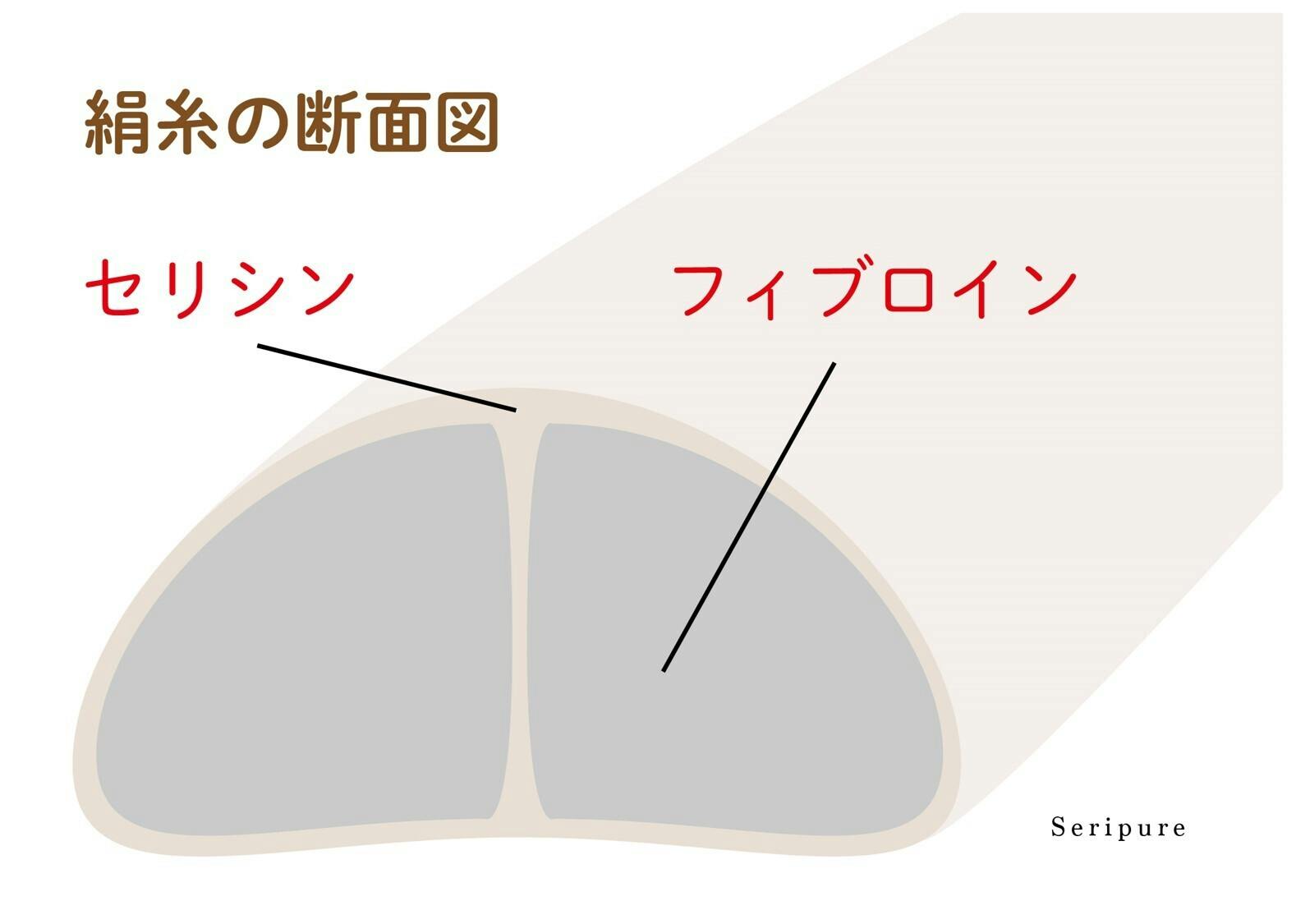 繭玉に含まれる「セリシン」という成分は、人肌の持つうるおい成分アミノ酸に極めて近いタンパク質で、保湿性に非常に優れています。人肌の組成に近いため、人間の肌に素早く浸透しお肌の潤いを保ってくれます。また、セリシンは高い保湿性能のほかにも、抗酸化作用や紫外線吸収機能もあわせ持ち、人肌には正に理想的な天然保湿成分と言えます。