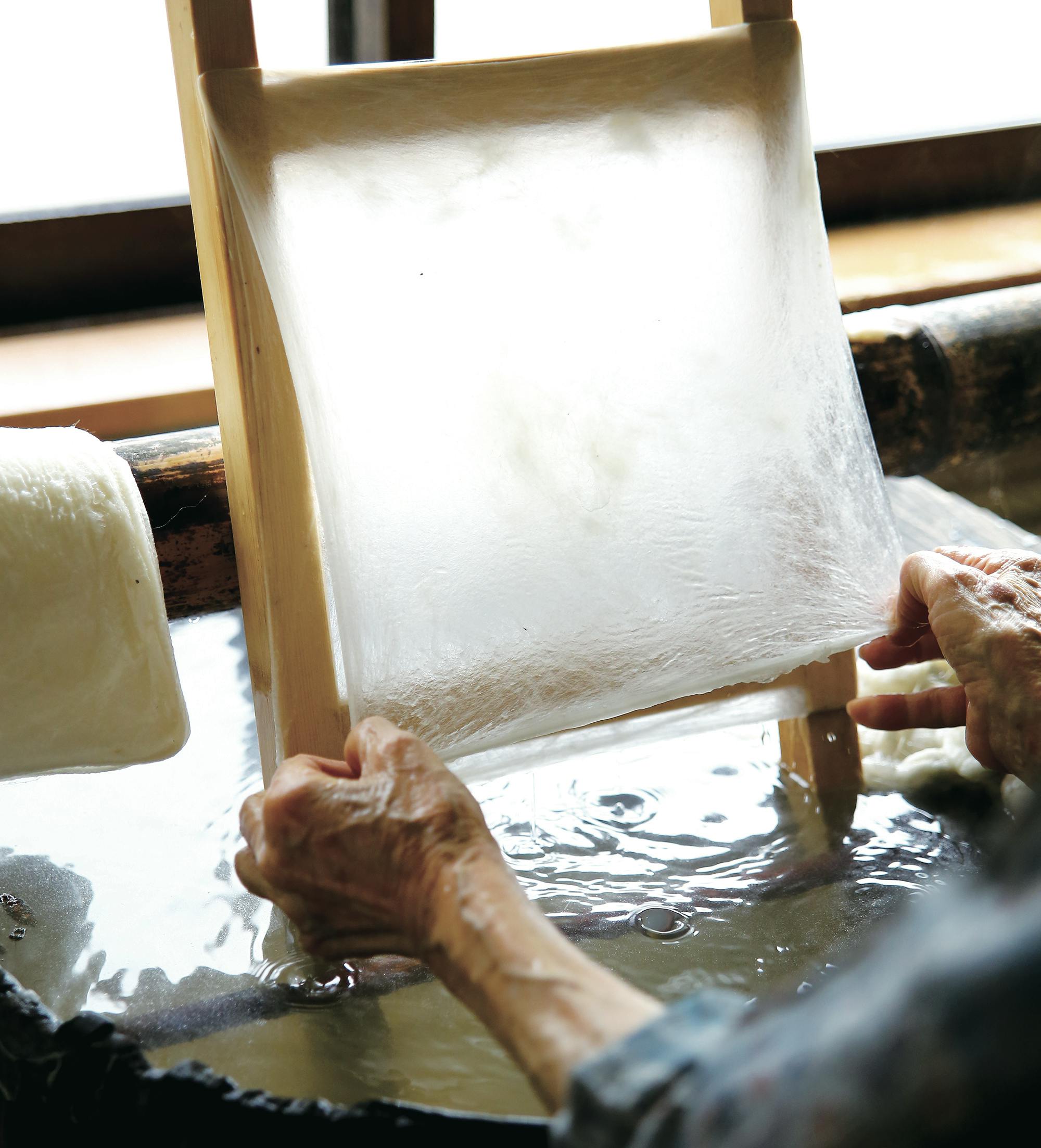 ▲繭玉から角真綿を作る女性職人たちは、「セリシン」効果により艶やかで美しい手をされています。