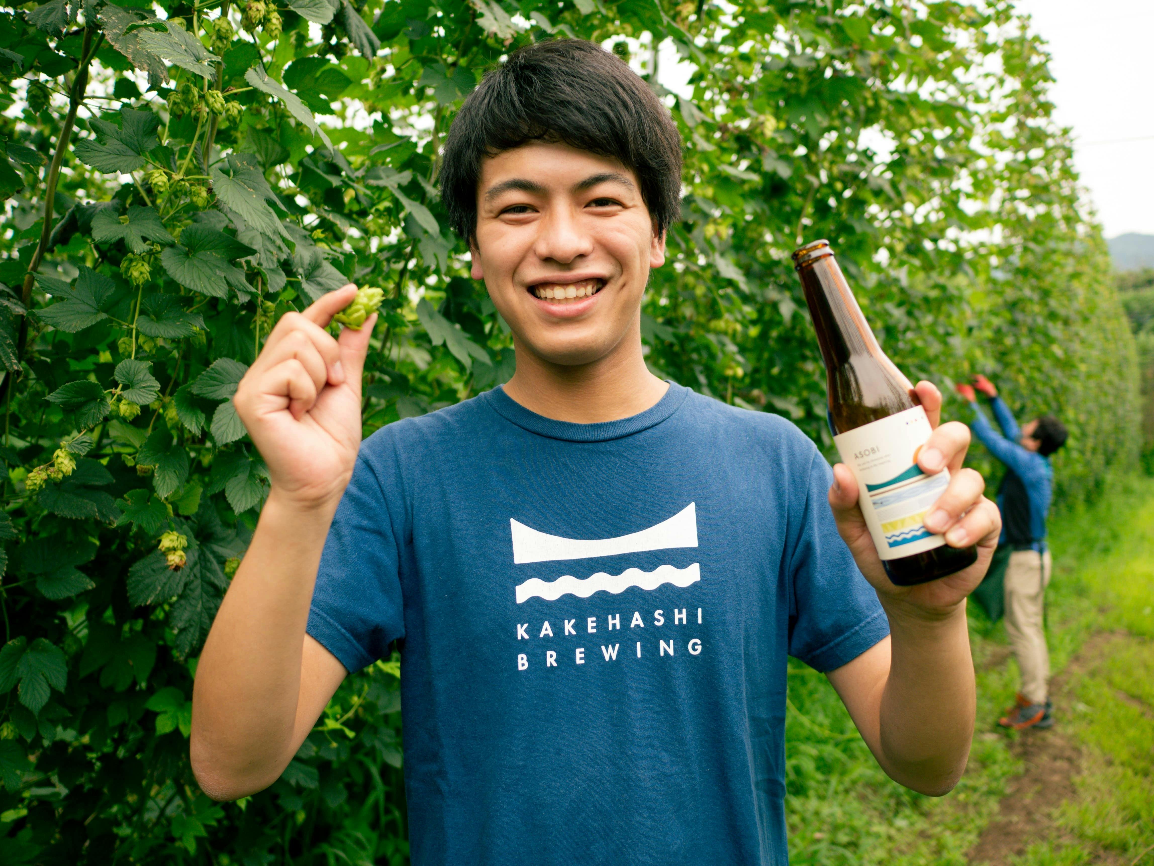 かけはしブルーイングの代表、濱田祐太です。私たちは、“国内随一のホップ産地”京都府与謝野町で、2020年秋から地元産のホップをふんだんに使用したビールを通じて、人と地域をつなぐ”かけはし”になりたいという想いでブランドを立ち上げました。与謝野町は、日本三景・天橋立を望み、山・川・海に囲まれた人口2万人程の小さな町です。2015年からビールの原料であるホップの栽培にまちをあげて挑戦し始めました。