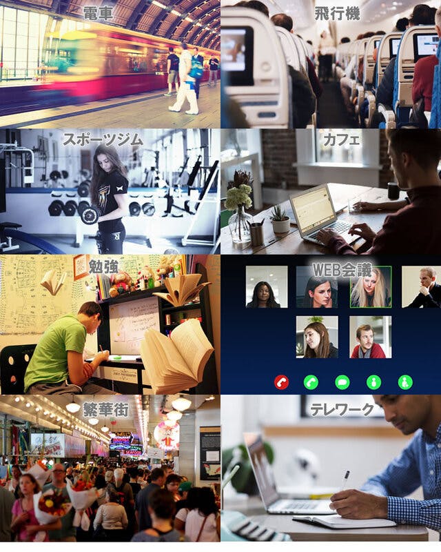 遮音性能は騒音値30~35㏈まで対応し、機内や列車、広場での雑音をしっかりカットします。