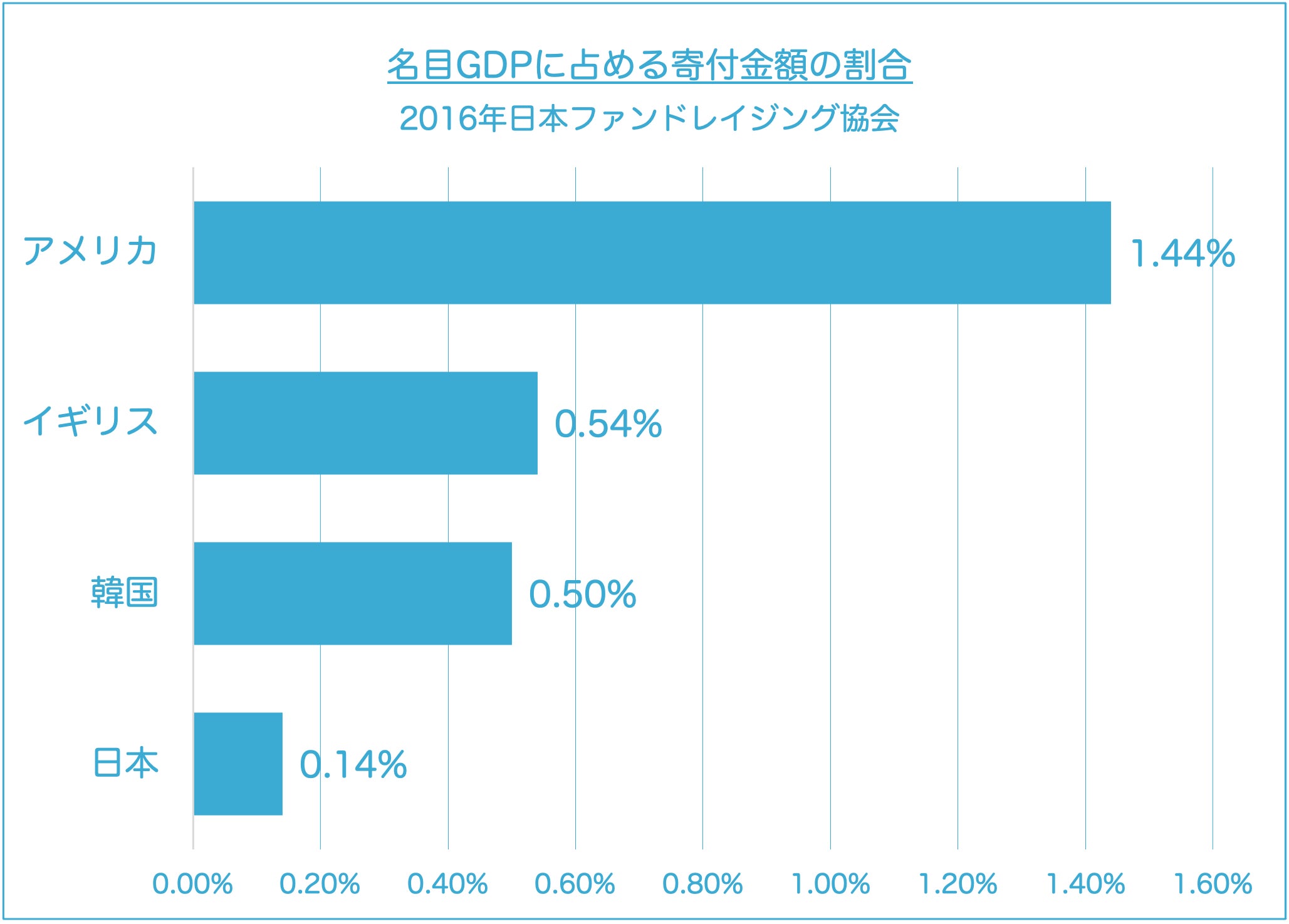 (最終アクセス2021年10月8日)日本ファンドレイジング協会が発表しているデータによると、2016年の日本全体の個人寄付総額は7,756億円、名目GDPに占める割合は、隣国である韓国との比較でも3分の1以下と、先進国においては、日本の個人寄付金額の規模が非常に小さいことがわかります。