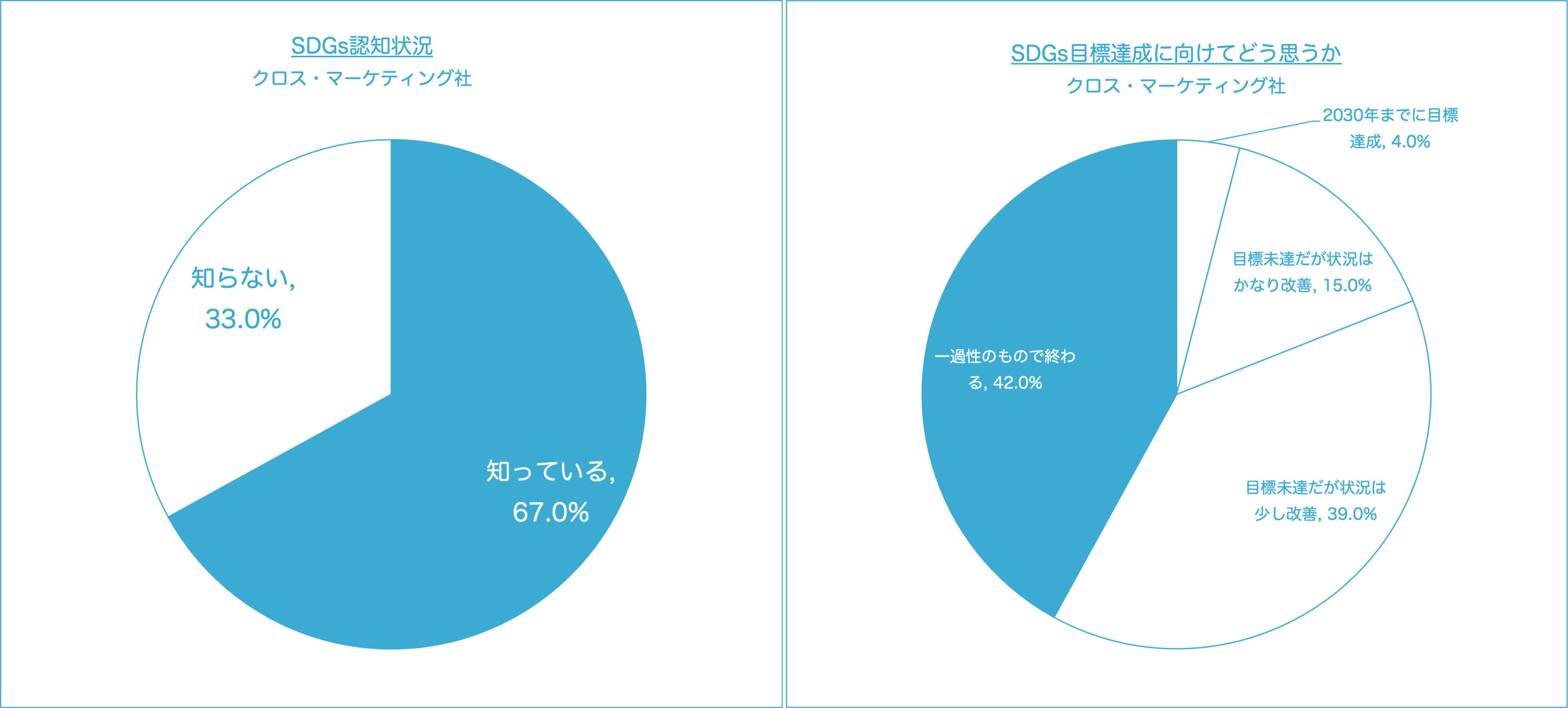 また大人を対象に行われたクロス・マーケティング社の調査では、SDGsの認知度は67.0%と2019年から2年間で約4倍となっています。