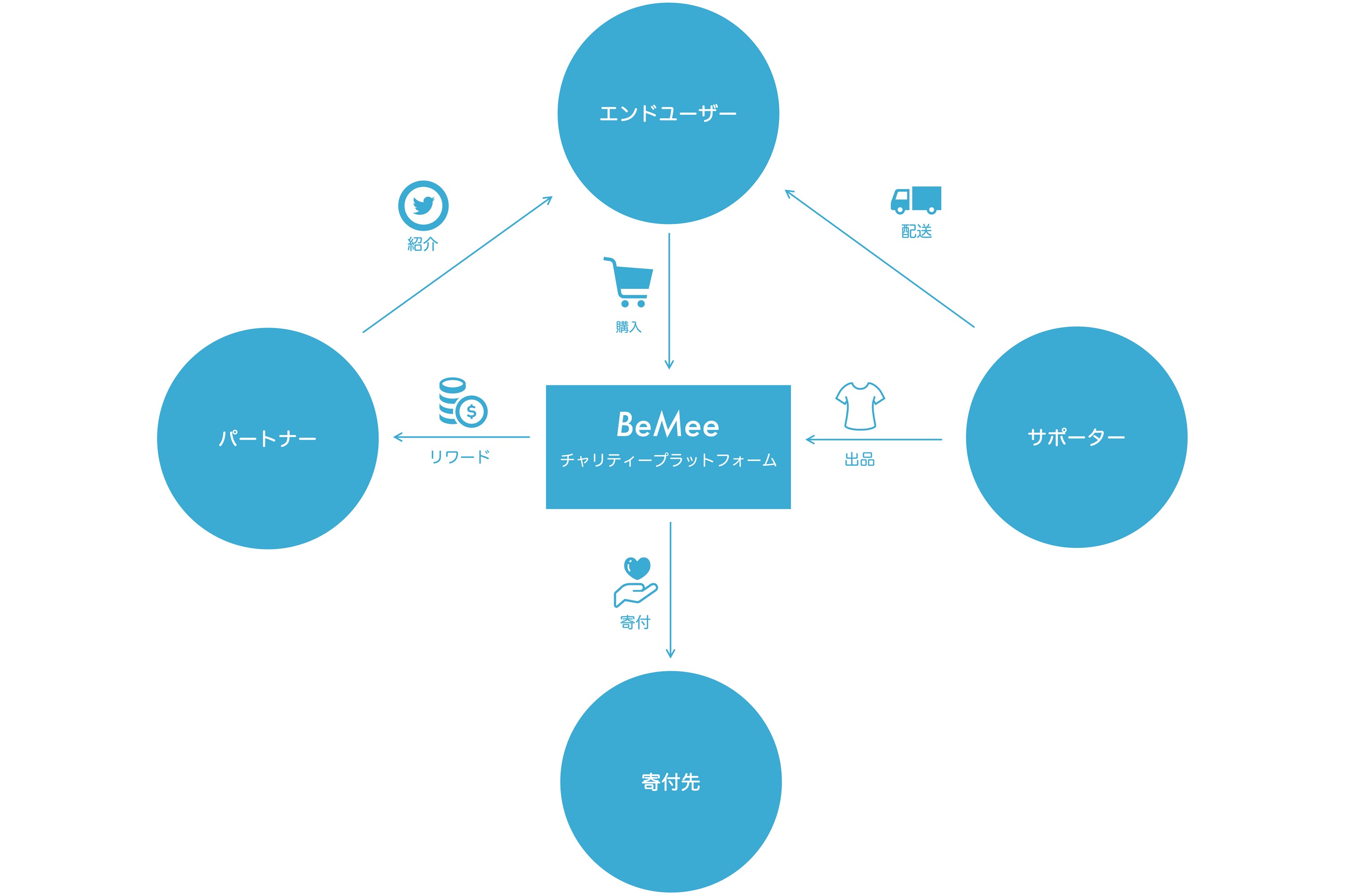 エンドユーザー、パートナー、サポーター、それぞれの皆さんにメリットがあると共に、持続可能な社会貢献活動ができるしくみとなっています。