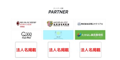 パートナー企業として法人名(法人ロゴ)をHPへ掲載させていただきます。
