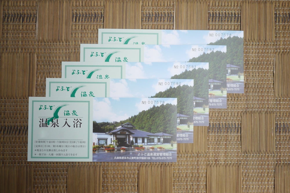 よふど温泉のチケット5枚とお礼状をお送りいたします。