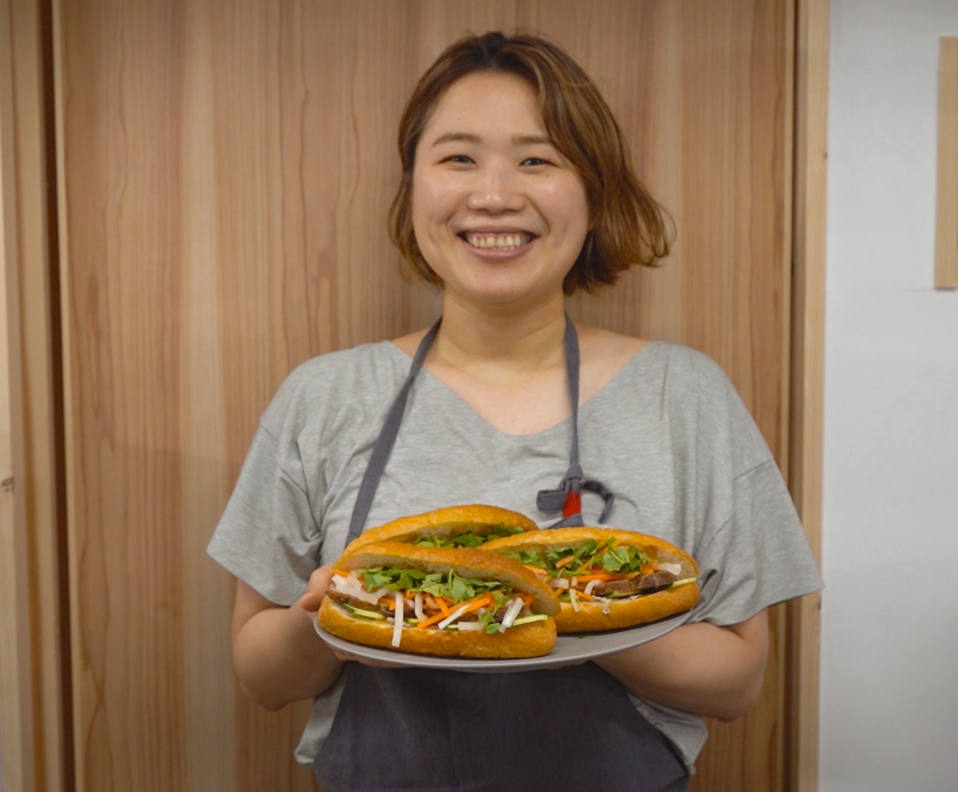 < カフェの看板メニューは、ベトナムのサンドイッチ「バインミー」!>