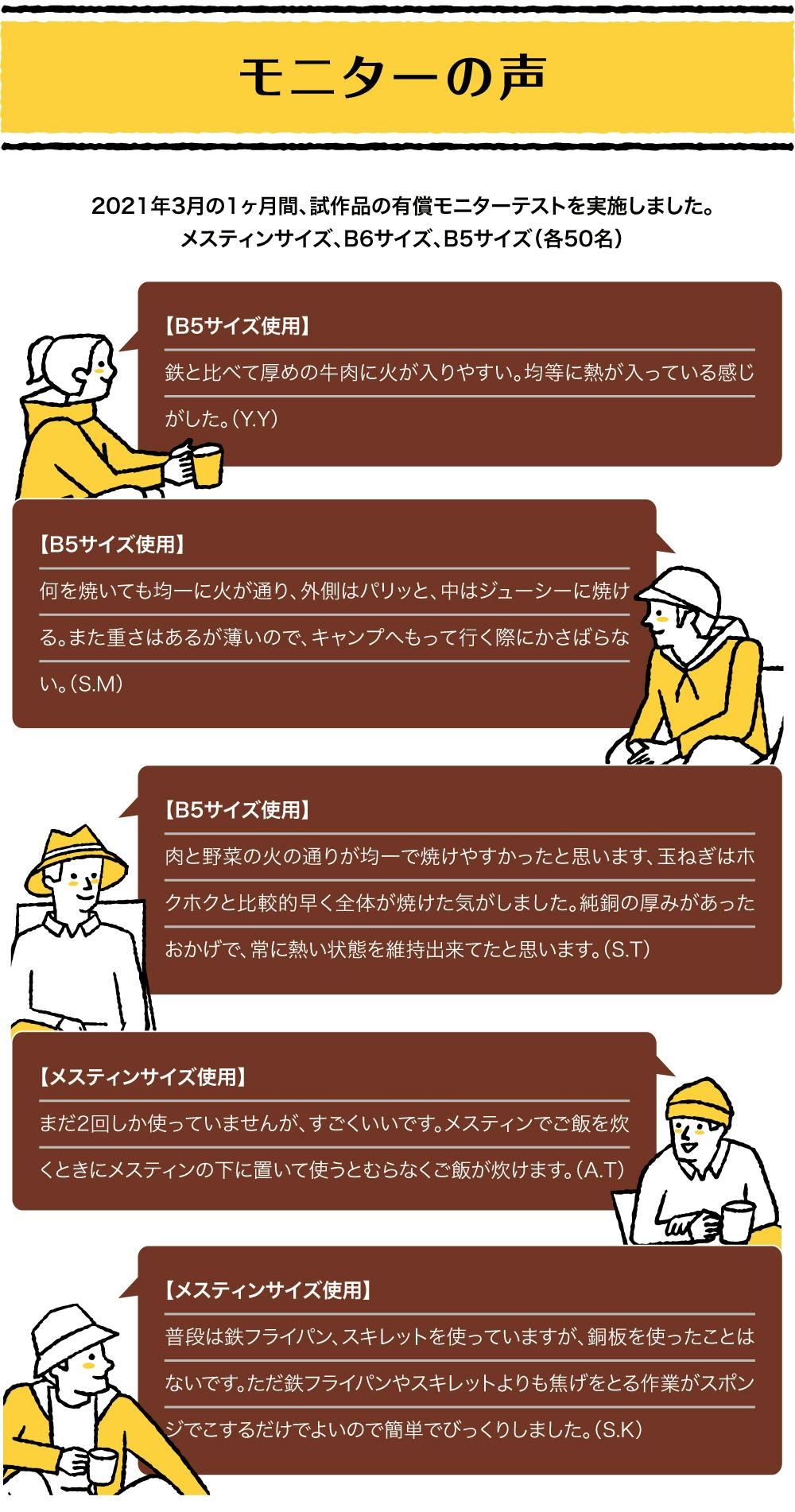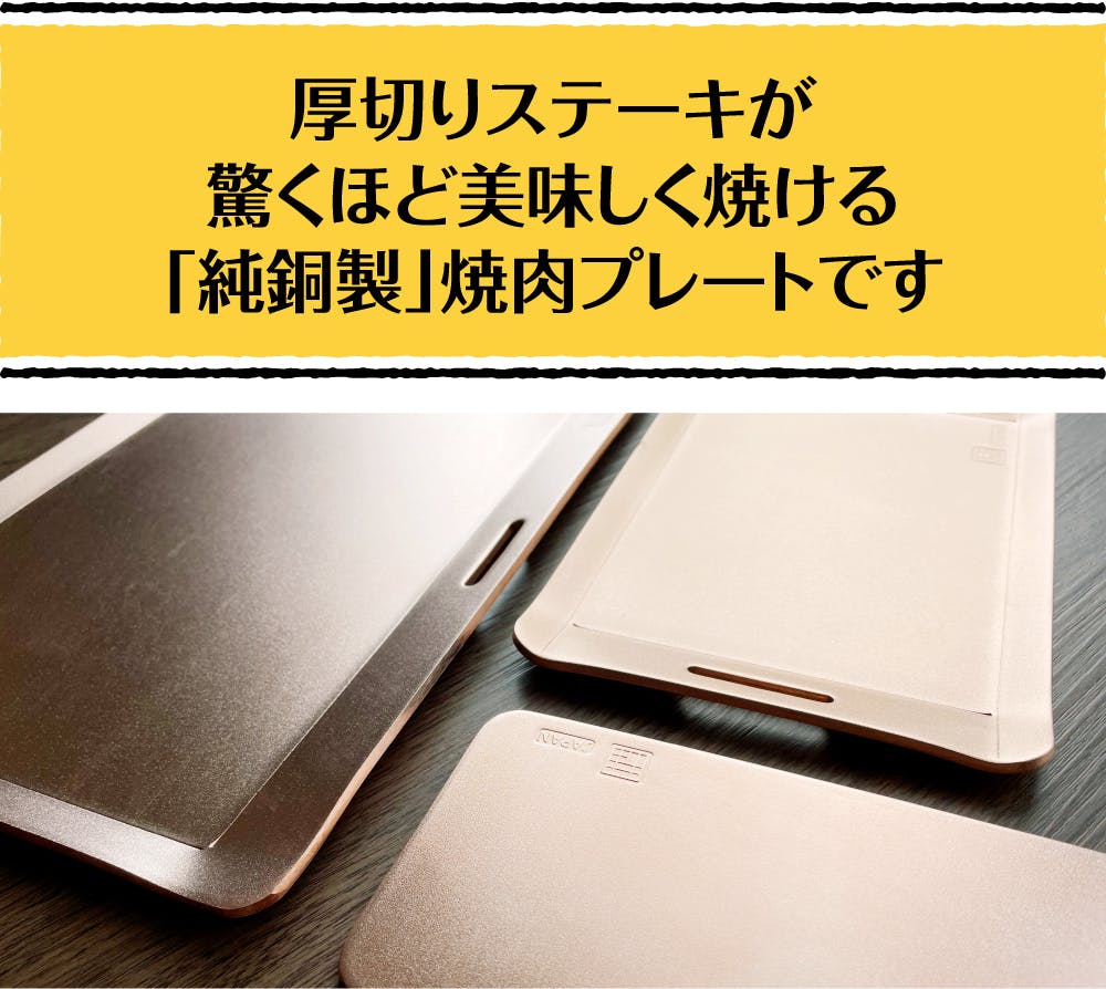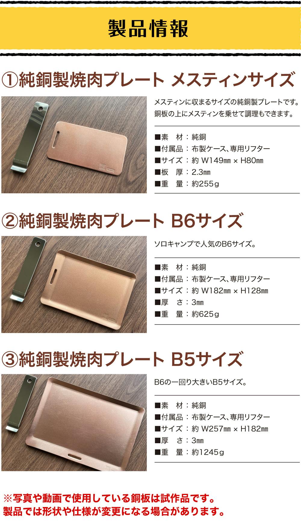 アウトドア好きな弊社の社長が、工場の隅においてあった銅板の切れ端を見て、お肉を焼けるのでは?と思いつき、ソロキャンプで銅板を使ってお肉を焼いてみたところ想像以上に美味しく焼けた事から、製品化に向けてプロジェクトをスタートさせました。