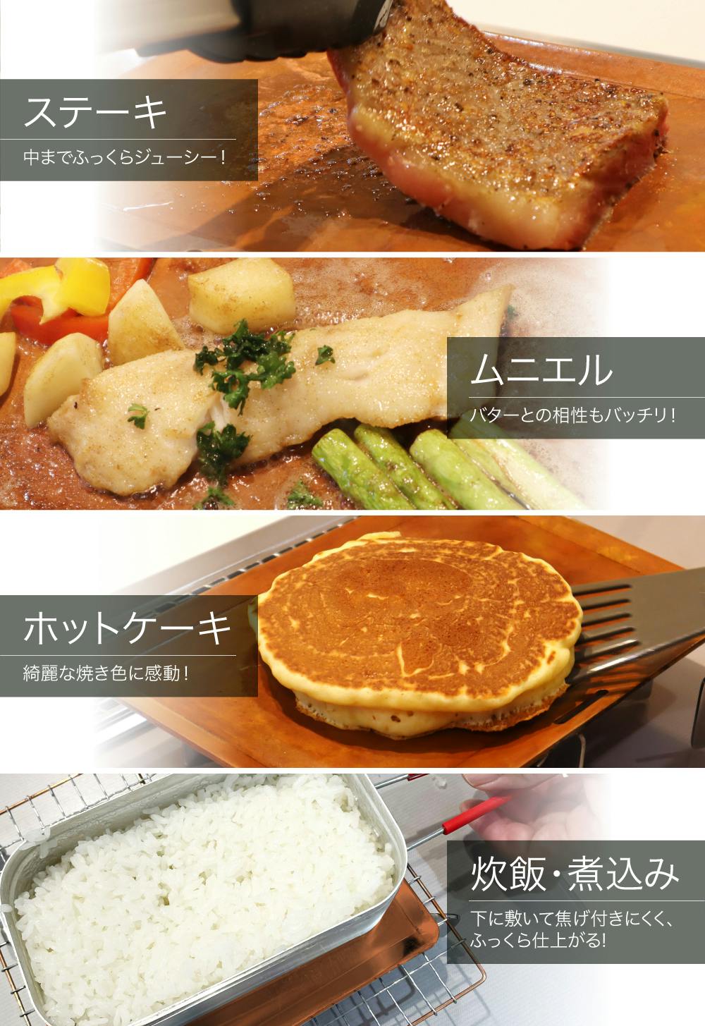 高い熱伝導率を活かした調理で、おしゃれなレシピにもチャレンジ!お肉はもちろん、パンケーキなどのスイーツも綺麗に焼き上げます。