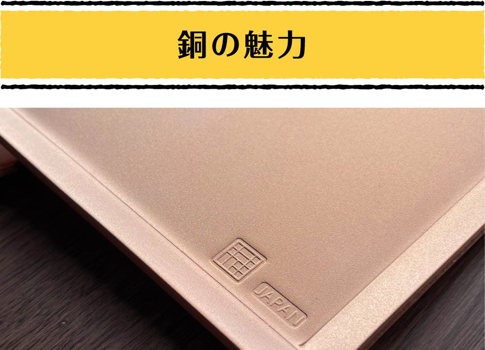 その理由は、純銅の熱伝導率が鉄の5倍(※)も高いと言われていて食材にムラなく均一に熱が入り、料理が美味しくなるからです。