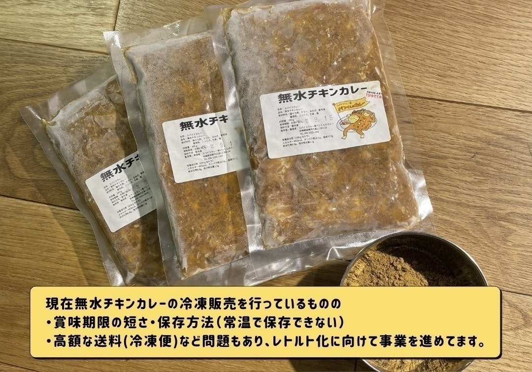 ただ、現段階では無水チキンカレーを大量に生産できるほど設備や人材が足りません