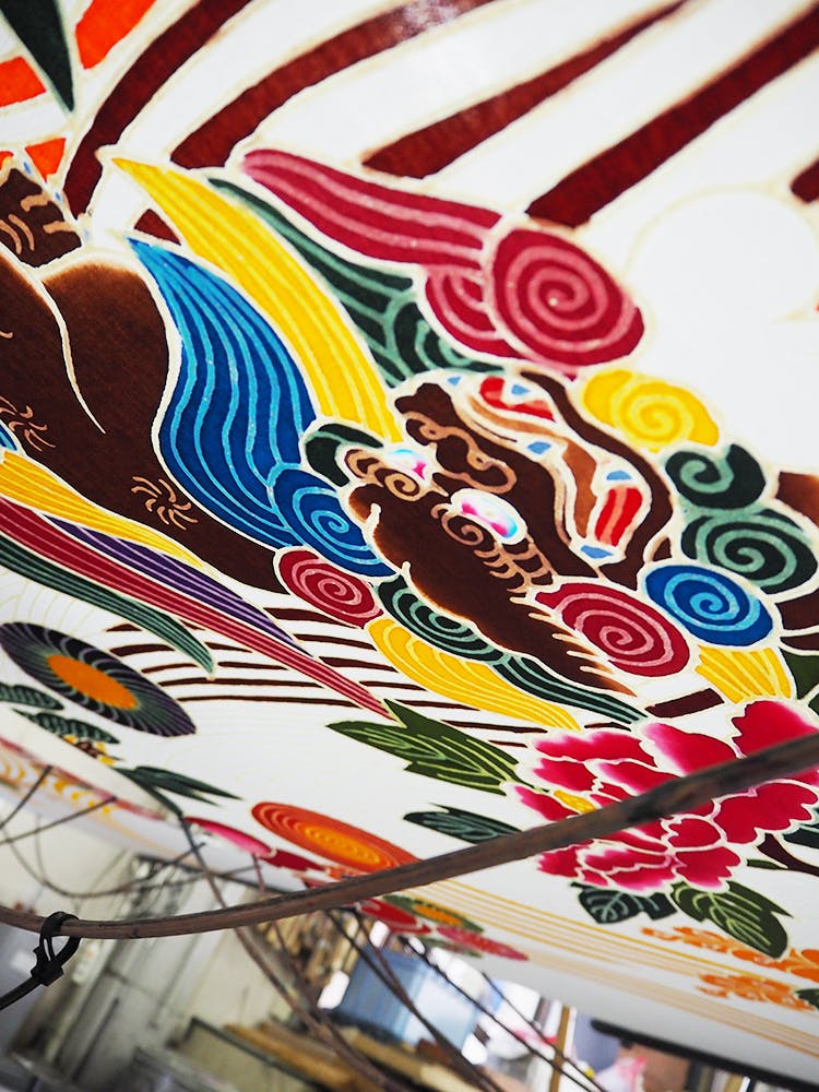 讃岐獅子舞の法被や油単、こんぴら歌舞伎の幟などを制作している染匠吉野屋の大野篤彦さんにご協力を頂き、本物の讃岐伝統工芸(讃岐のり染)を手に取って頂けます。