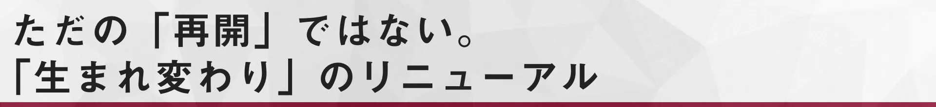ただの「再開」ではない、「生まれ変わり」と言えるレベルのリニューアルを行います。
