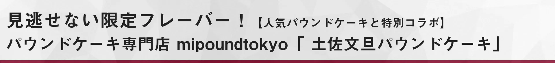 材料と焼き時間にこだわりを尽くした「贅沢なパウンドケーキ」として、スイーツ好きの間で圧倒的な支持を得る、パウンドケーキ専門店『mipound tokyo』との特別コラボによるクラウドファンディング限定のパウンドケーキです。外側ザクザク、中はどっしり&しっとりの新食感で、余計なものは一切入っていない、心にも体にも優しい味です。クラウドファンディング限定で高知県の特産品果物「土佐文旦」をふんだんに使用したパウンドケーキをご用意いたしました。素材の味をいかしたこだわりのパウンドケーキと、土佐文旦の最高のコラボレーションをお楽しみください。