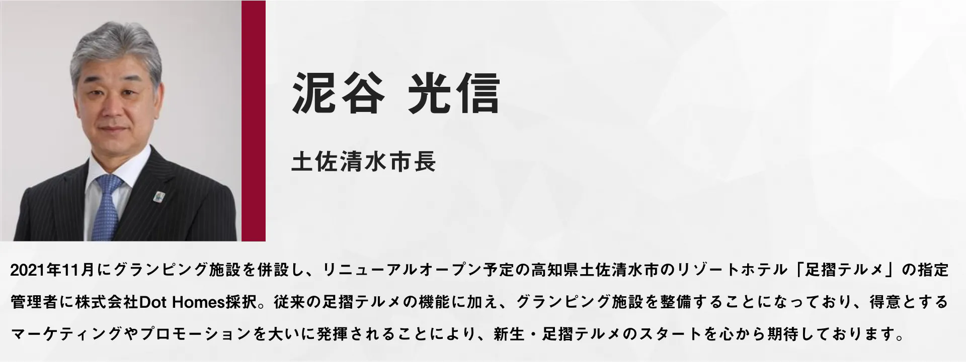 高知県土佐清水市から宿泊温泉施設「足摺テルメ(以下アシズリテルメ)」の指定管理者に採択されました、株式会社Dot Homesの代表、留田紫雲(とめだしゅん)と申します。