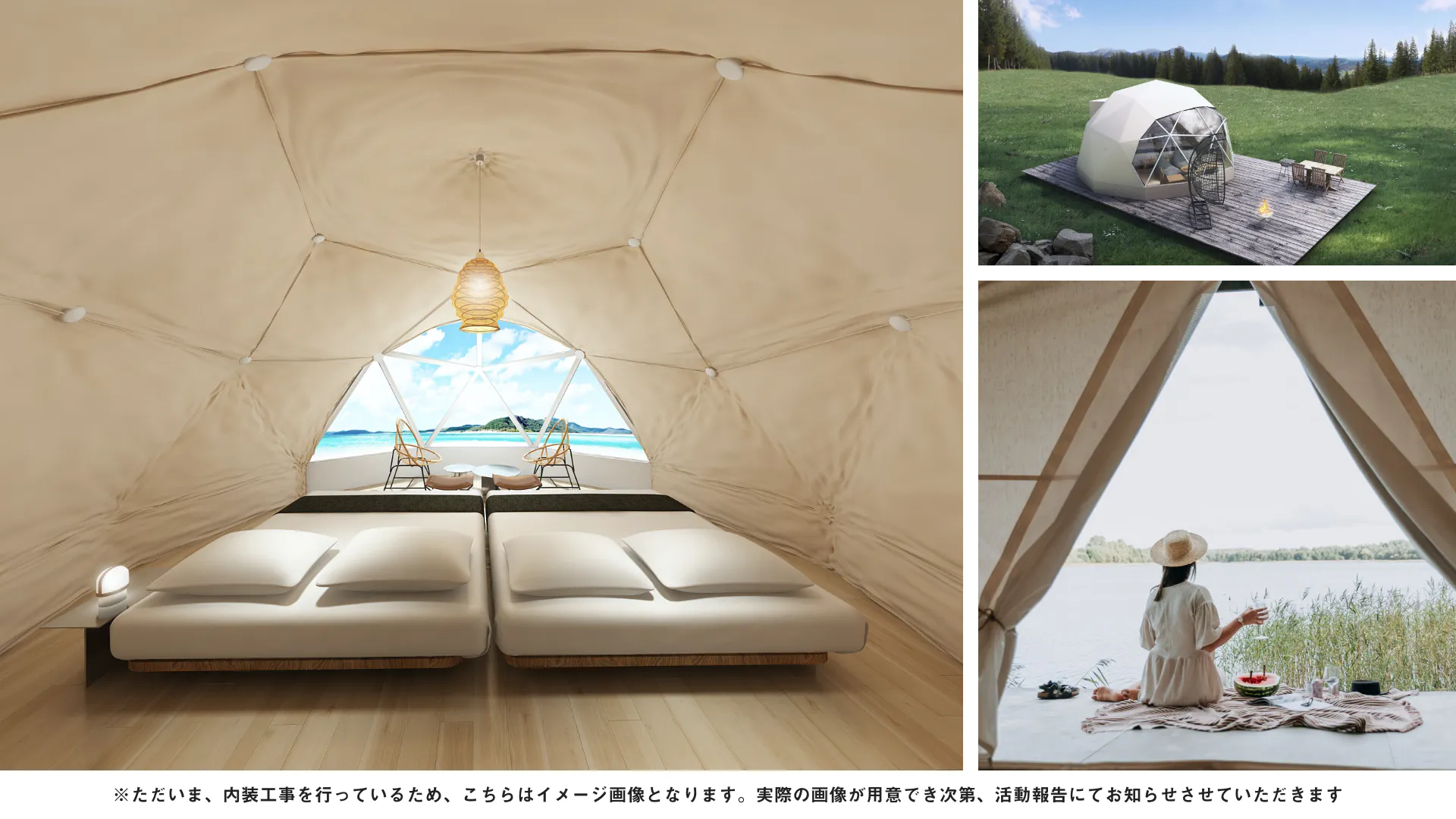 「自然を感じる」ためにデザインされたドームテントでのご宿泊です。