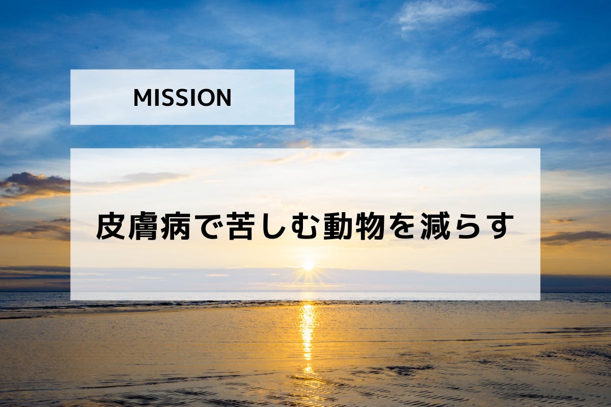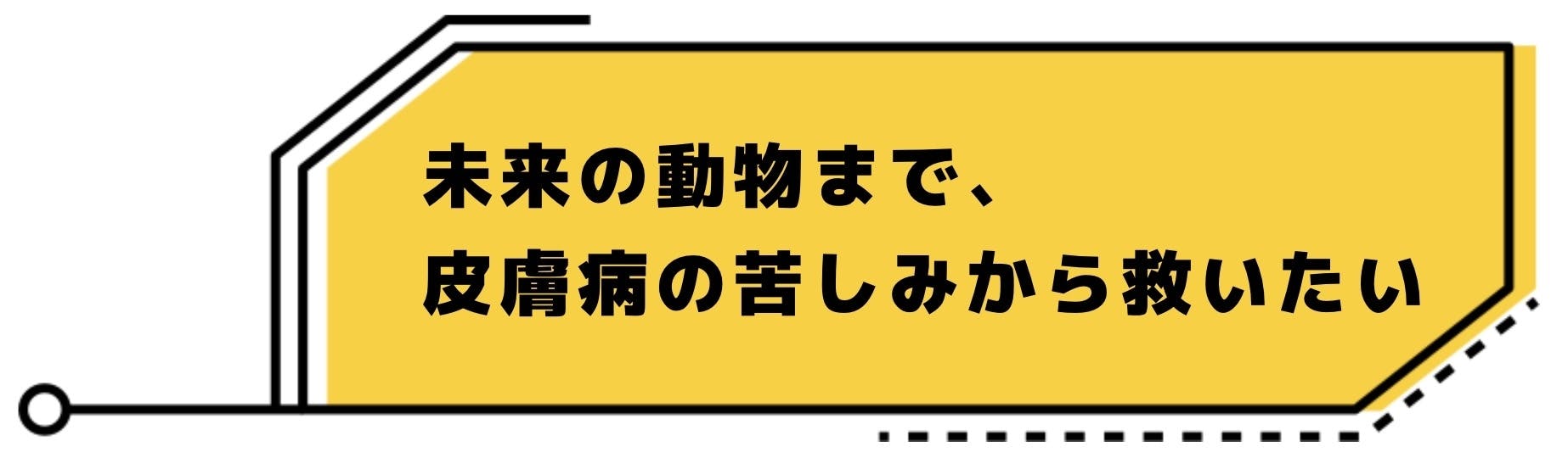 これが本プロジェクトのテーマであり、ロゴとなっています。皮膚病や外耳炎で悩む動物たち、そのご家族の不安や嘆きが日々私たちの元に届きます。
