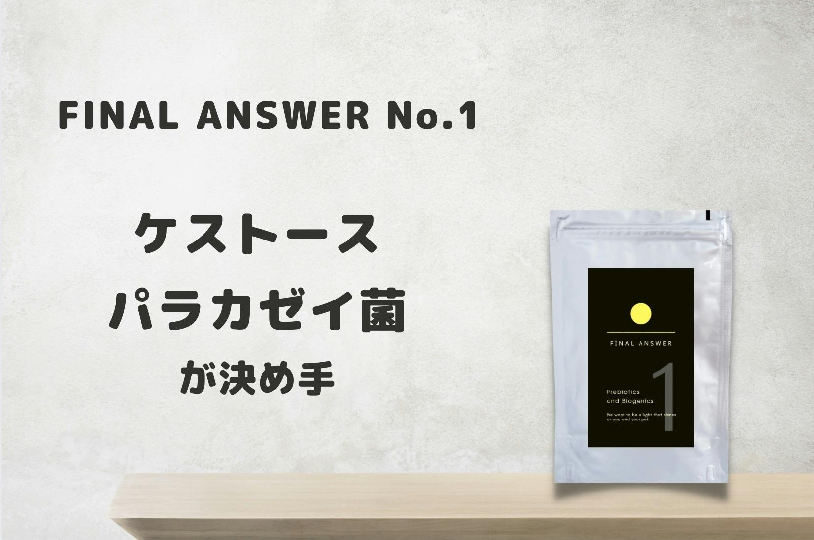 『FINAL ANSWER No.1』はプレバイオティクスとバイオジェニックスを組み合わせた腸活サプリメントです(No.1以降は現在進行系で開発中です)。