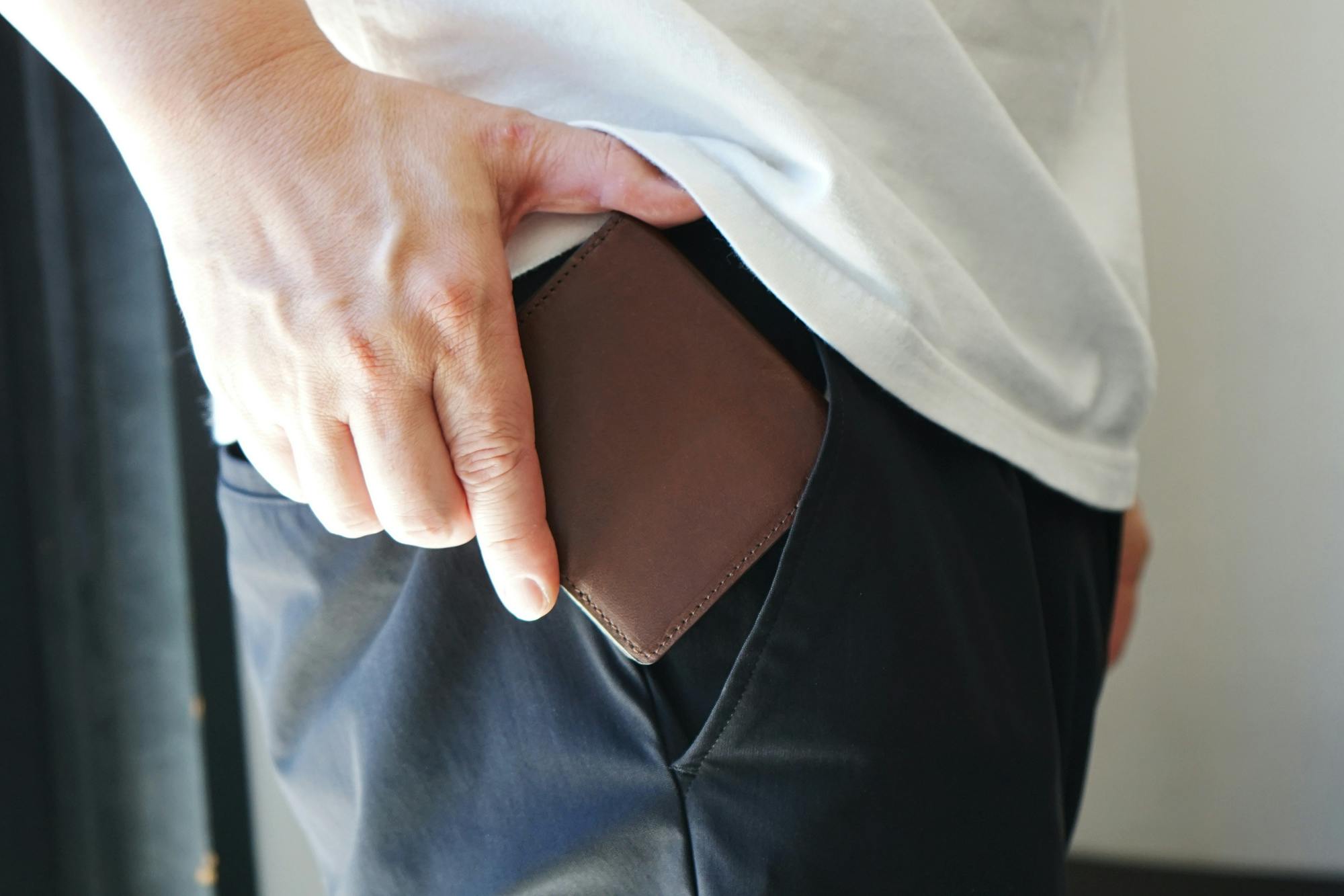 様々な時短構造を備えた、オールインワン スマートコンパクト財布ですが、見た目はとてもシンプルで、ポケットに入れた時に、ファスナーやホックが引っかかることがなくスムーズに出し入れできます。