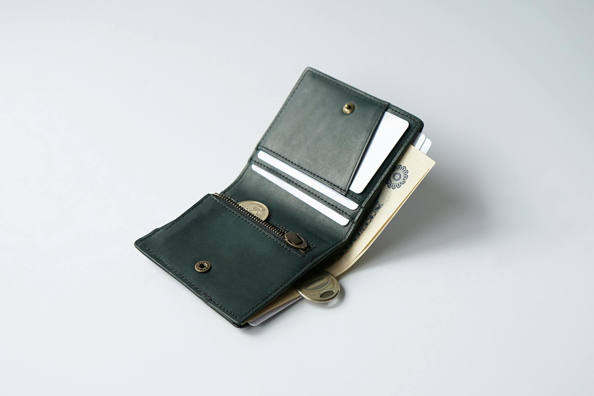 最大で、小銭15枚ほど、紙幣12枚ほど、カード7枚ほど。さらに鍵の専用ポケットを装備した、まさにオールインワン スマートコンパクト!!