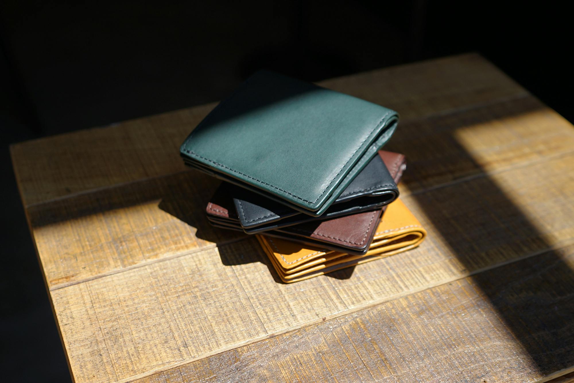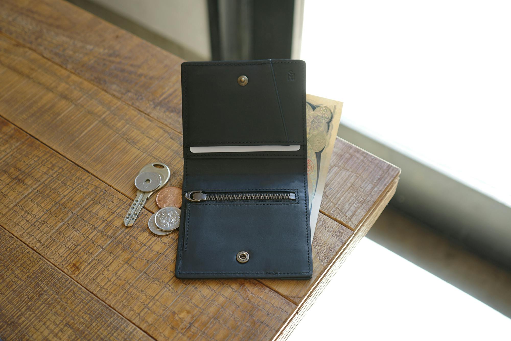 (多くの薄い財布は薄さを追求するあまり、革自体を薄くしていますが、革が薄すぎると耐久性や質感が損なわれ、永くエイジングを楽しみがら共に過ごせなくなりますので、革は絶妙な厚みで調整しています。)