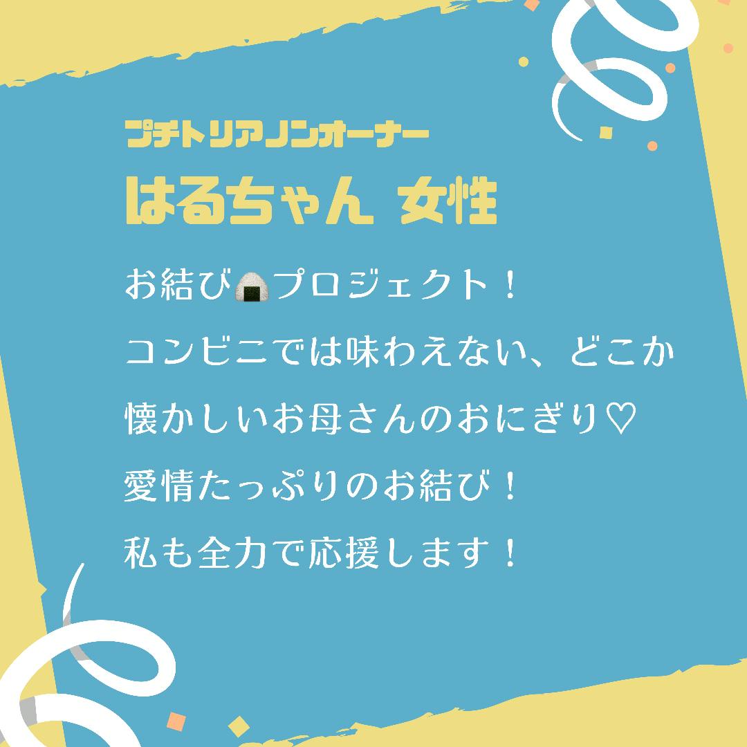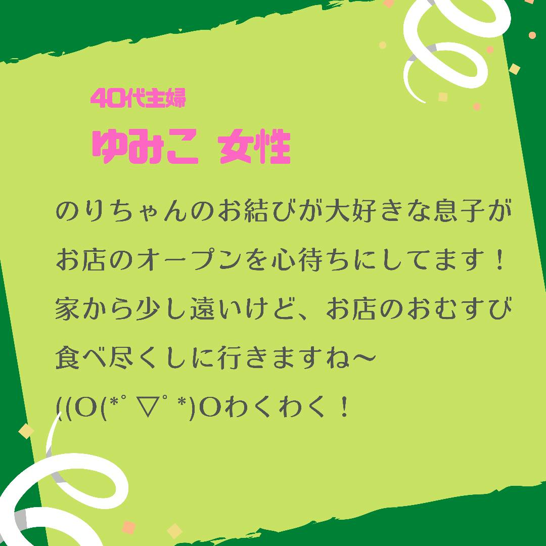 飲食店のオーナーになりたいと思っていたところに、友人からのお話をいただき、テイクアウトを中心にしたおむすび屋を開店することにしました。まだ私には時期早々かとは思いましたが、こんなチャンスが次くるかわからないのでチャレンジしてみようと決意しました!