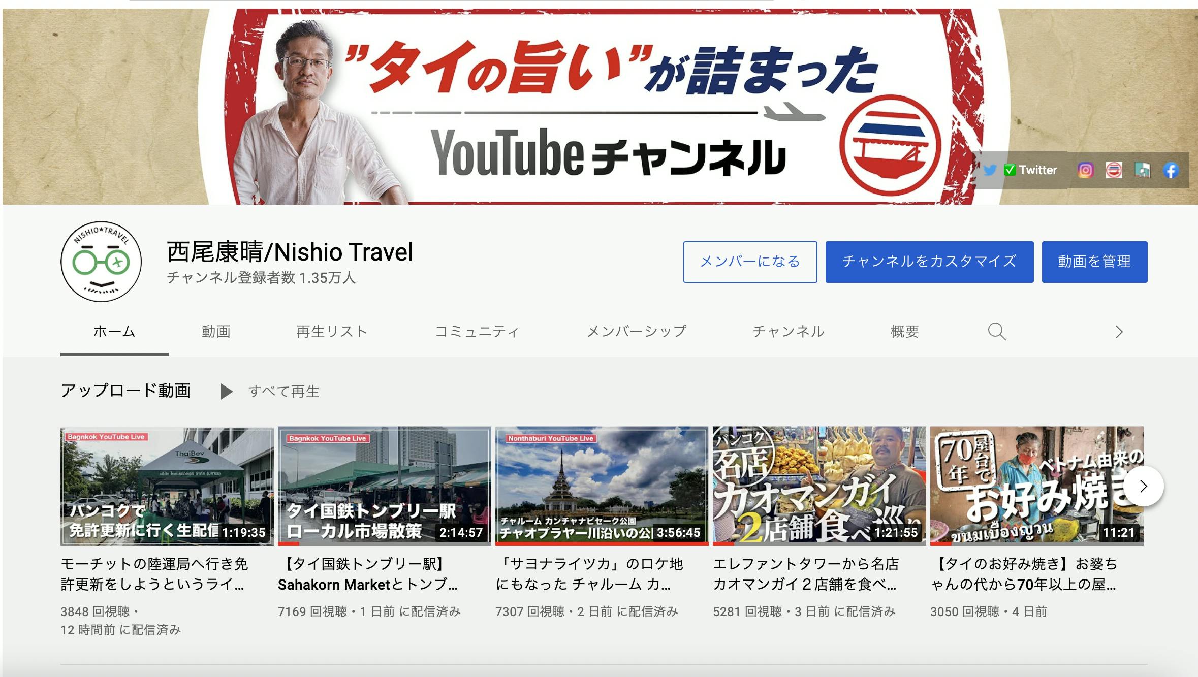 運営しているYouTubeチャンネル「NISHIO TRAVEL」