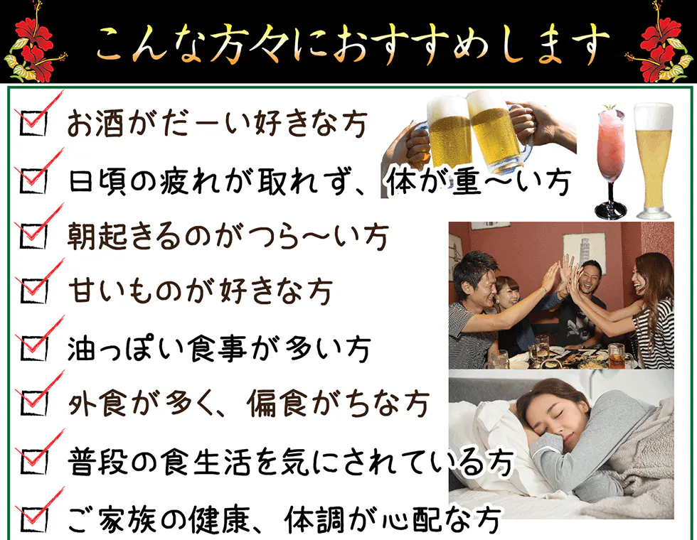 オーガニック栽培された100%沖縄産原料を使用し、保存料・着色料無添加であることが商品への信頼性を担保することはもちろん、そしてそれ以上に、お酒を飲んだ翌朝分かるスッキリした目覚めと爽快感が商品への信頼感へ結びついていることと思います。