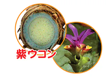 野草としては総体的に春ウコンが秋ウコンよりも優れています。それは、春ウコンの豊富な精油成分(エッセンシャルオイル)に由来します。融合ウコンは沖縄で栽培可能な春、紫、白の3種に、平成17年に品種改良により登録された秋ウコン種の「沖縄皇金」を加え、 合計4種を原料として選びました。