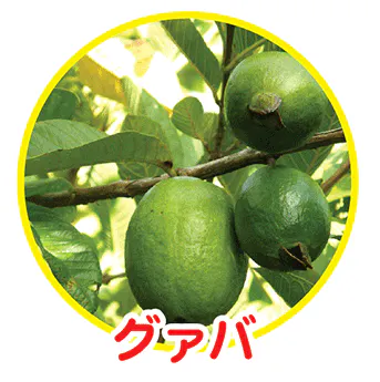 グァバ葉には、グァバ葉ポリフェノールと呼ばれる特有の成分が含まれ、台湾や亜熱帯地方では、グァバの葉はお茶に、果実はジュースとして一般に利用されています。