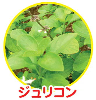 ジュリコンはブラジルやヨーロッパ南部、中国にも分布するシソやハッカの仲間で、全草に芳香があり、草丈は1メートル位まで生長します。ブラジルでは肉料理の調味料として一般に用いられています。マンジェリコンと同様のハーブの一種です。
