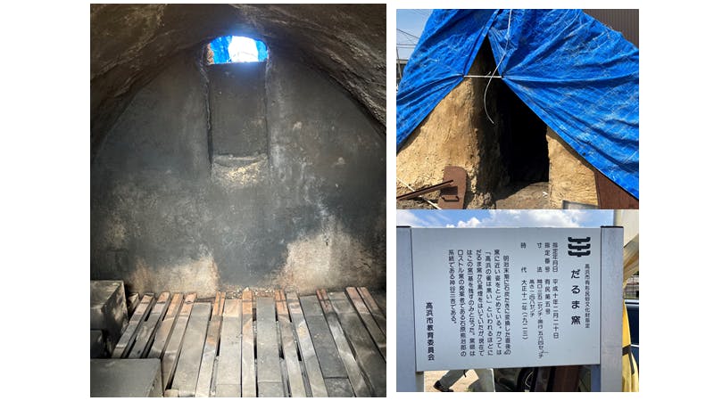 使用してあるレンガが現在のものと異なっており、同じ大きさで再建するため、レンガを特注することにしました。表層は黒レンガが使用されていましたが、現在、日本で黒レンガを作れるのは数軒しかないそうで、作れるところを探してもらい、高浜の三州丸栄さんにお願いしました。三州丸栄さんは三河陶器協同組合で唯一の三河黒七輪の継承者で、高浜市有形民俗文化財に指定された大正時代のだるま窯で作っています。成型・乾燥させたレンガに黒鉛を塗って磨き、もう一度塗って磨き、窯で焼いて焼成の最後に煙でいぶし炭素を吸着させることで黒色になります。最後に煤を留めるためにニスを塗って仕上げます。この工程をすべて手作業で、1000丁以上仕上げてくれました。