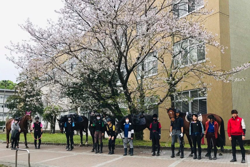 鹿児島大学を拠点に馬7頭、部員21名で活動しております、鹿児島大学馬術部です。
