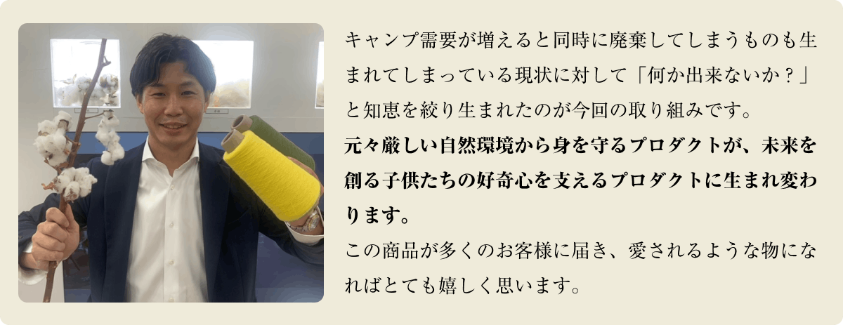 今回は、アウトドア×モノを通じて、子供たちが楽しみながら環境について考えるキッカケづくりができればと思い、新たな挑戦に乗り出します。