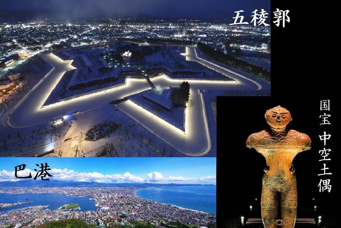 ペリー来航後、いち早く開港された『巴の港』そしてその夜景、戊辰戦争の折 幕府軍が立て籠もった五稜郭、世界遺産に指定された縄文遺跡群、そしてその中の大船遺跡群から出土した国宝『中空土偶』など名勝史跡の見どころ満載の非常に素晴らしい地域であります。