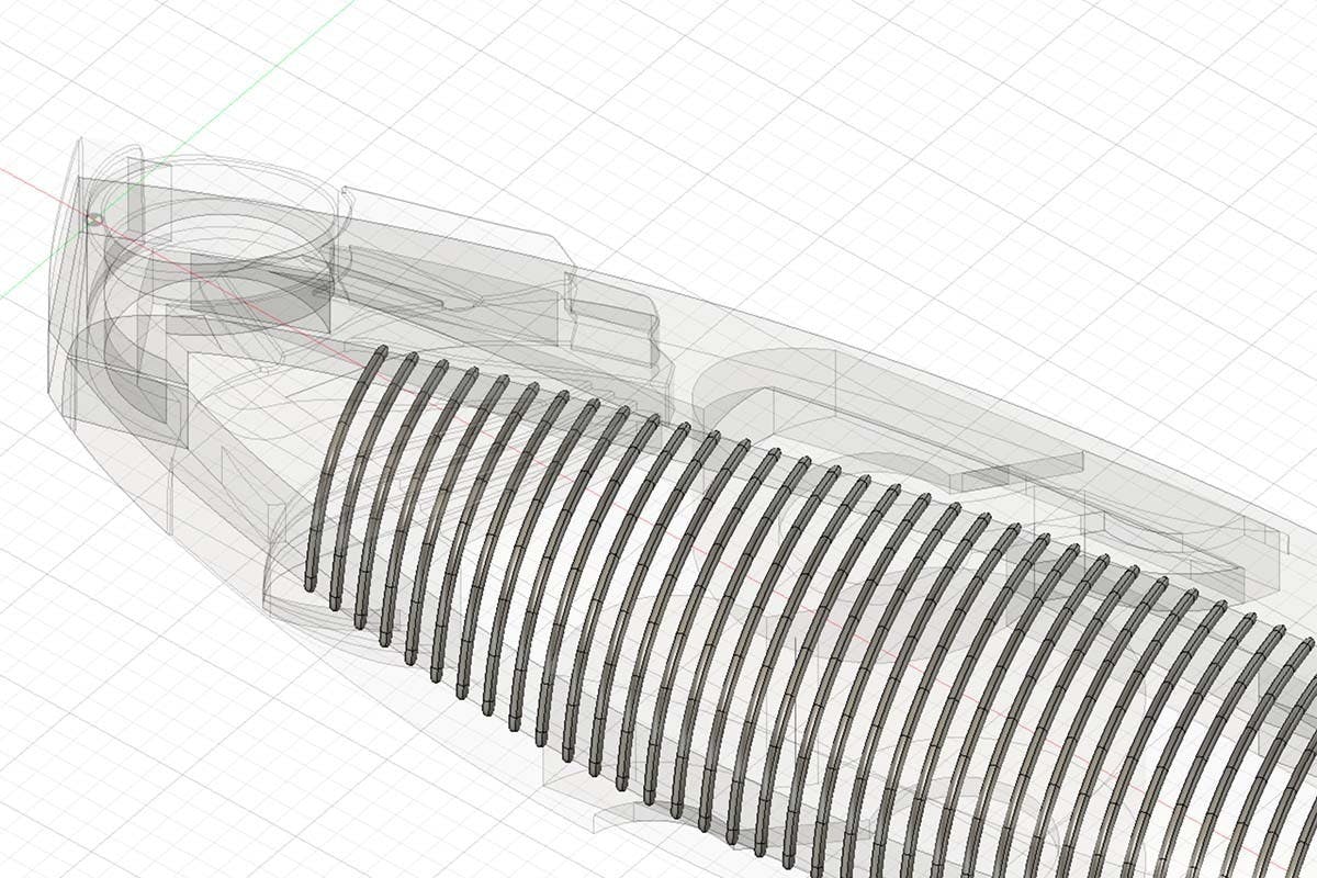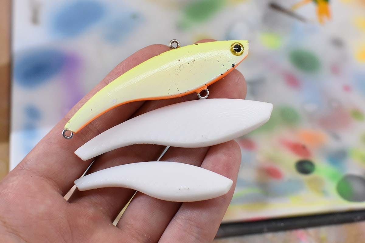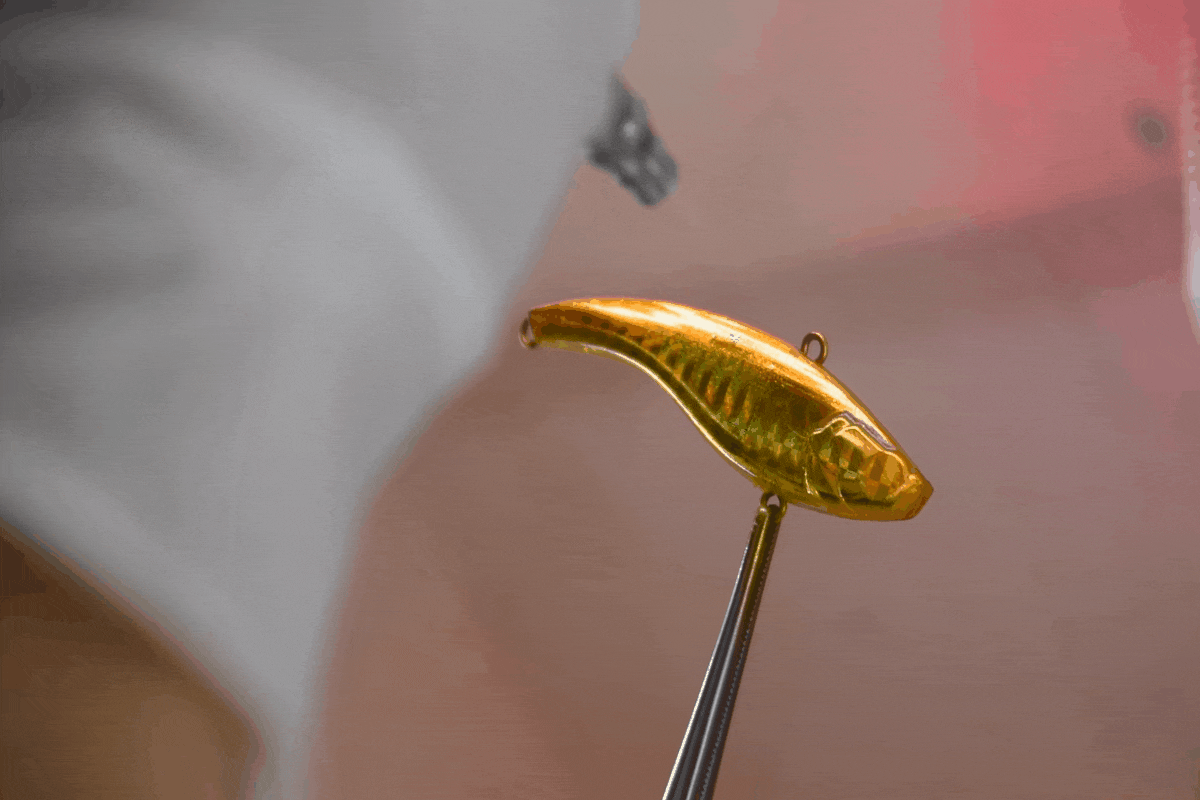 3DCADを用いてルアーの3Dデータを作成します。ルアーの厚み、形状、エラの凹凸など複雑な設計が必要になる非常に重要な工程になります。