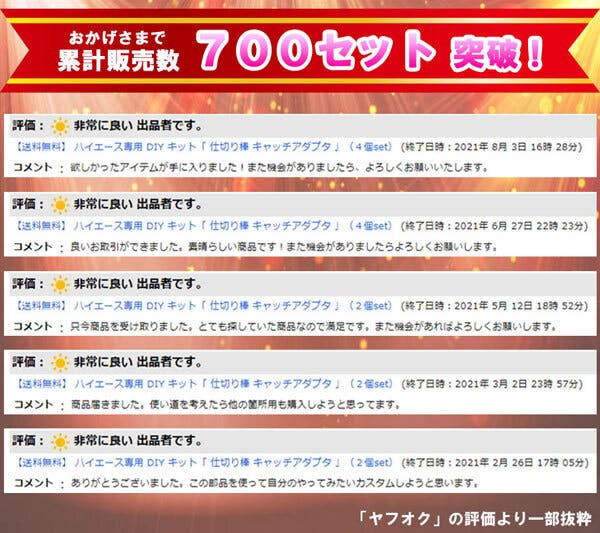 その為、フリマサイトではすでに豊富な販売実績があり、'21年2月の販売開始から現在までの約7ヶ月で累計販売数が700セットを突破いたしました!