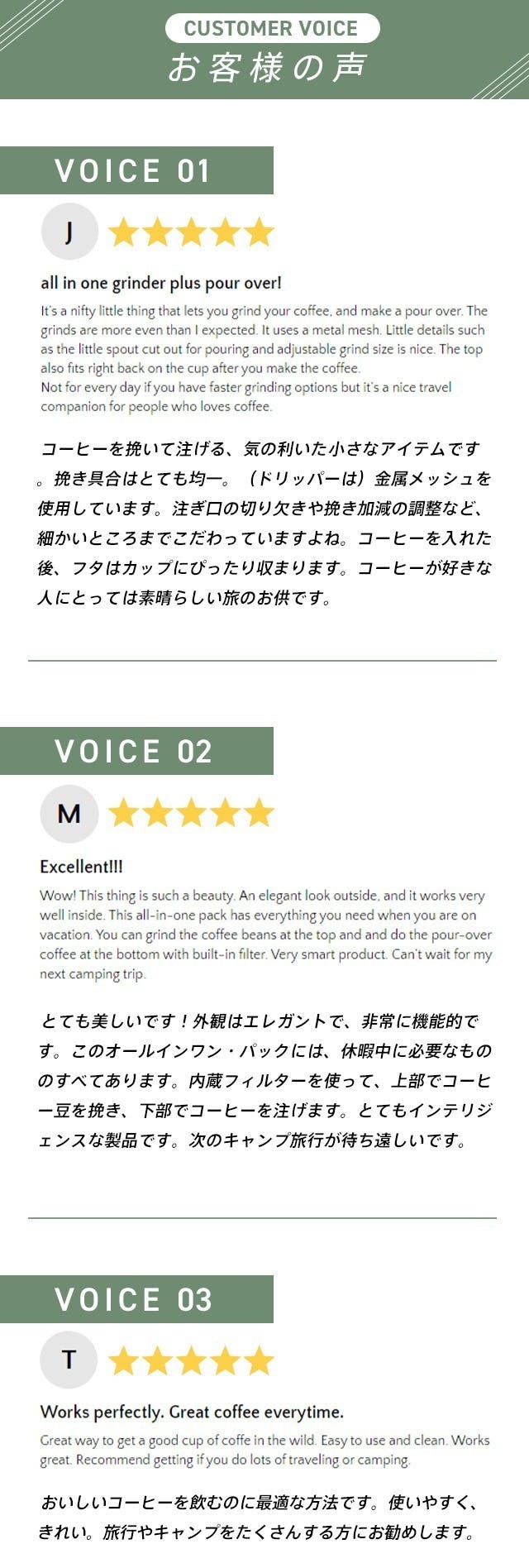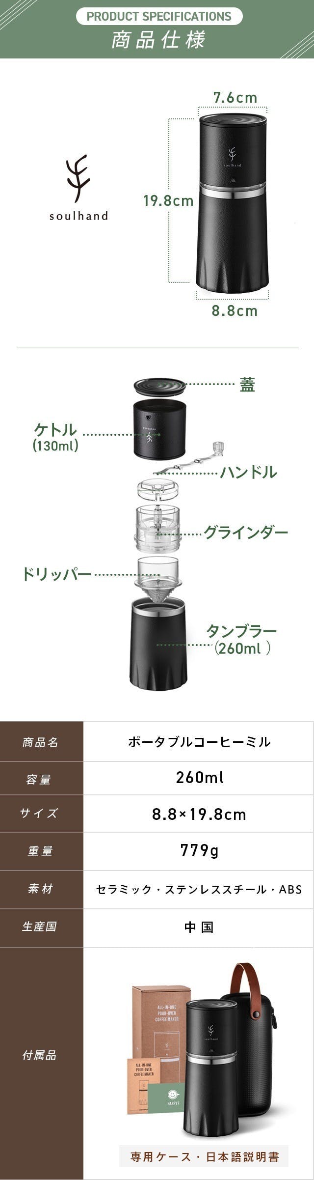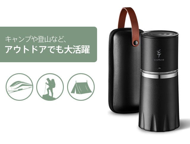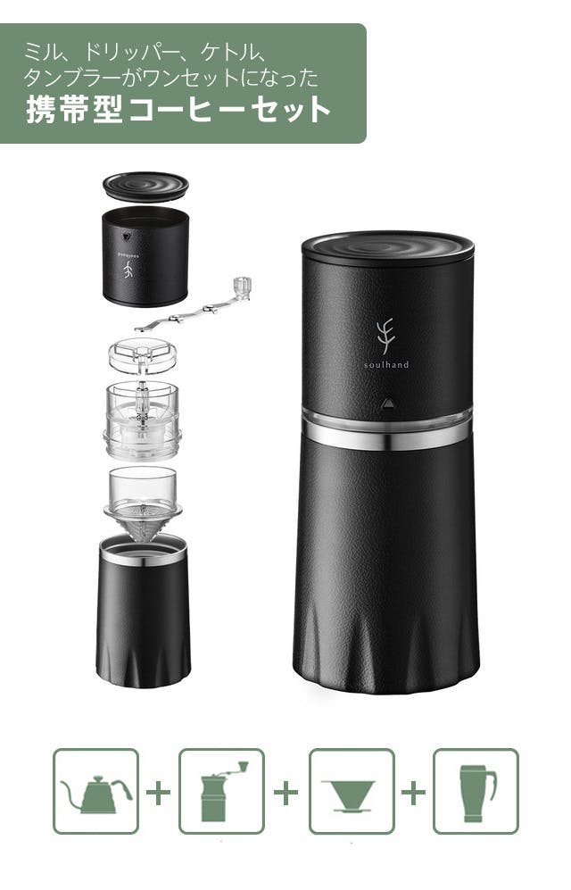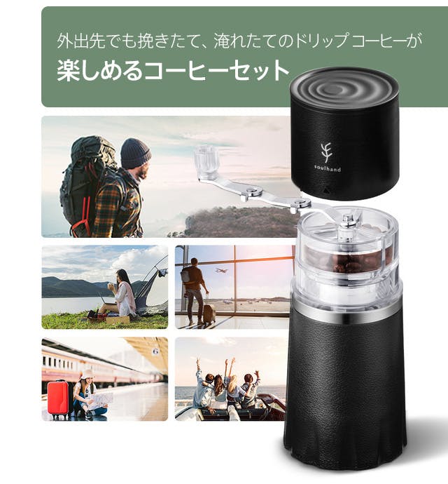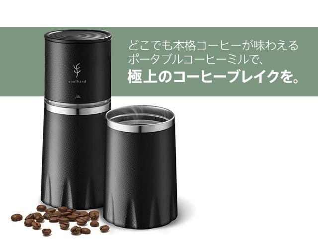Soulhandさんのオールインワン・コーヒーミルは、荷物がかさばるのも抑えられ、外出先で手軽に挽きたての美味しいコーヒーが楽しめる素敵な商品と出会えました。