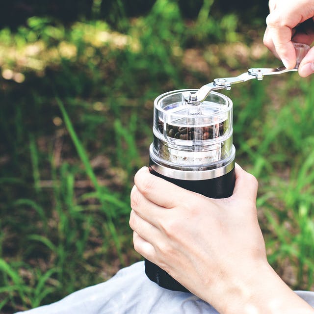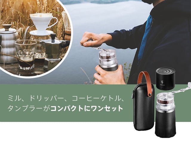 キャンプや登山などのアウトドアで、豆から挽いた美味しいコーヒーを楽しめます。