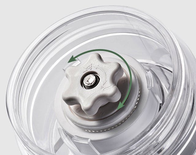 A: グラインダーの底にあるツマミを回して調整してください。(付属のハンドルで回転軸を固定してツマミを回してください)