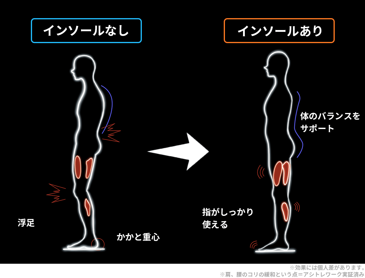 今までのシークレットインソールと違い、かかと位置に違和感が出ないんです。