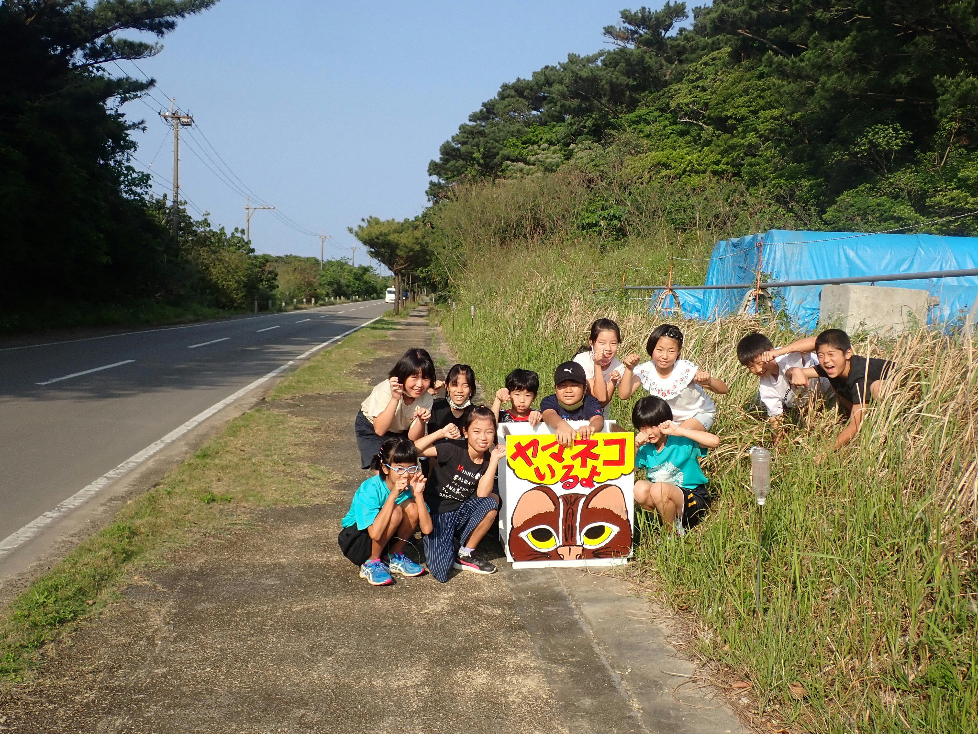 環境教育プロジェクト「ヤマネコのいるくらし授業」では、竹富町教育委員会、地元出身の先生方と協力し、学習用冊子の作成や、夜間パトロール体験などを行っており、上原小学校では授業後に注意喚起看板やチラシの配布を行うなど、学校独自の取組としても発展しつつあります。