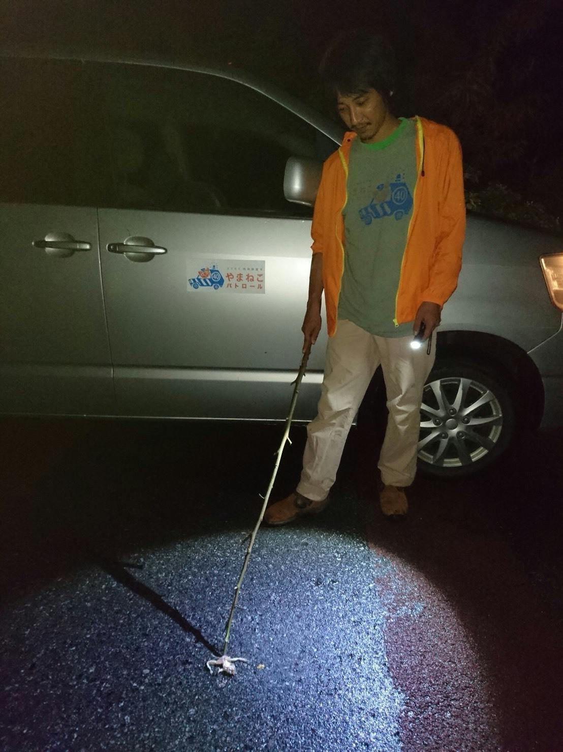 夜間パトロールでは、ヤマネコの目撃情報収集や路上にヤマネコを誘引する原因となる小動物の死骸の除去、交通調査(車の台数、進行方向、スピード、車種)などの作業を行っており、目撃情報や交通調査の結果は環境省、沖縄県、竹富町などの関係機関と共有し、交通事故対策に活用されています。