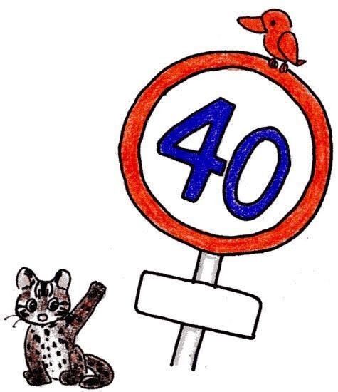 ヤマネコが突然道に飛び出て来たとき、すぐに停まれる速度で(法定速度40キロ)、運転して!というメッセージが 込められています。