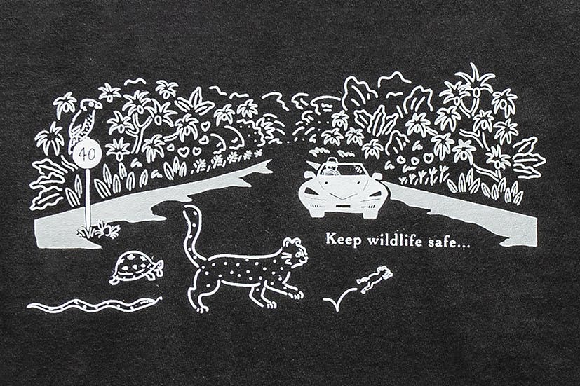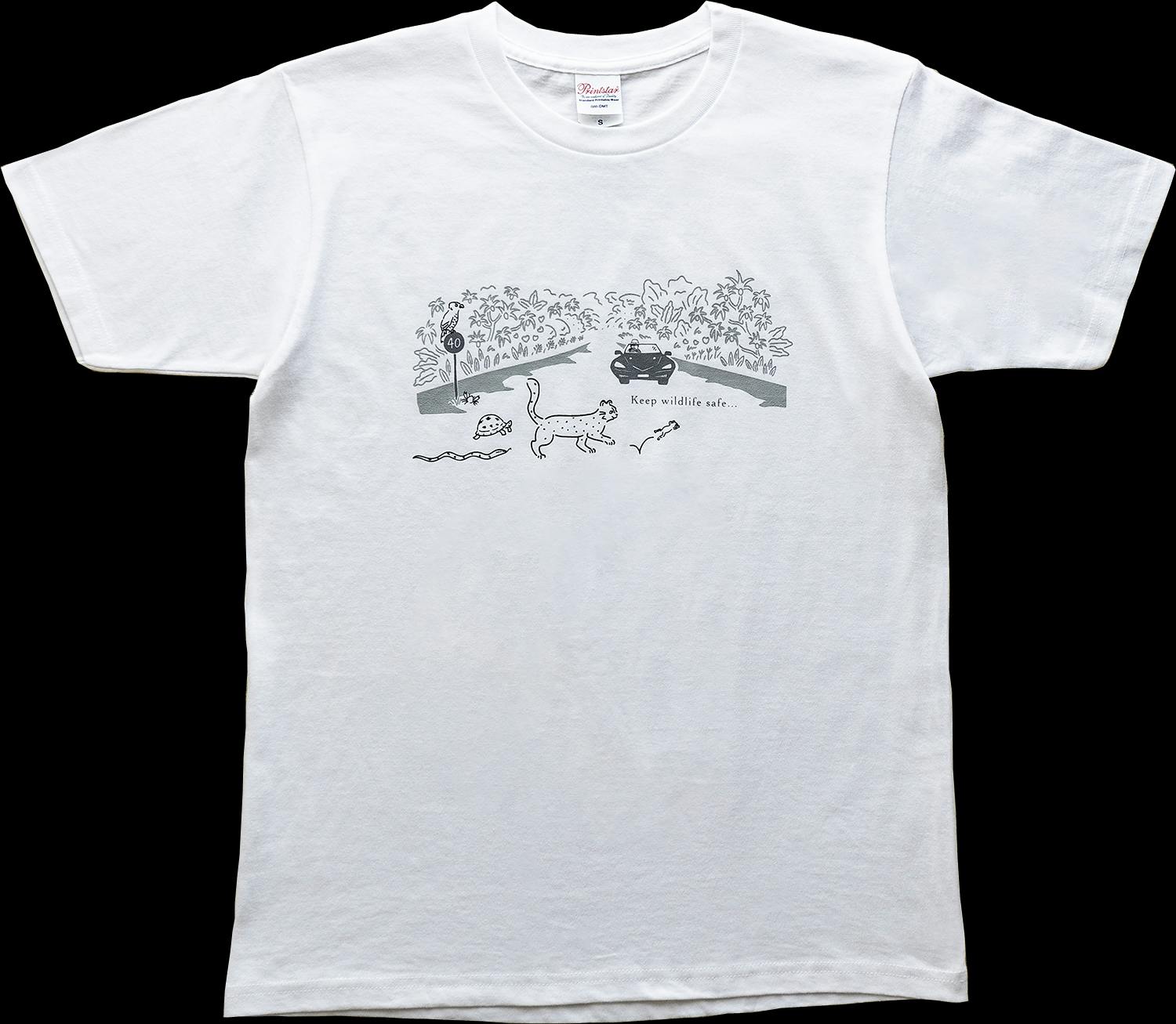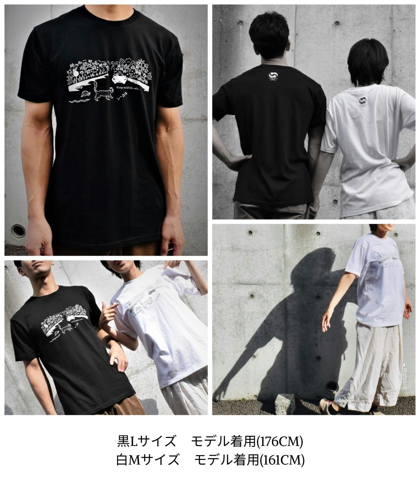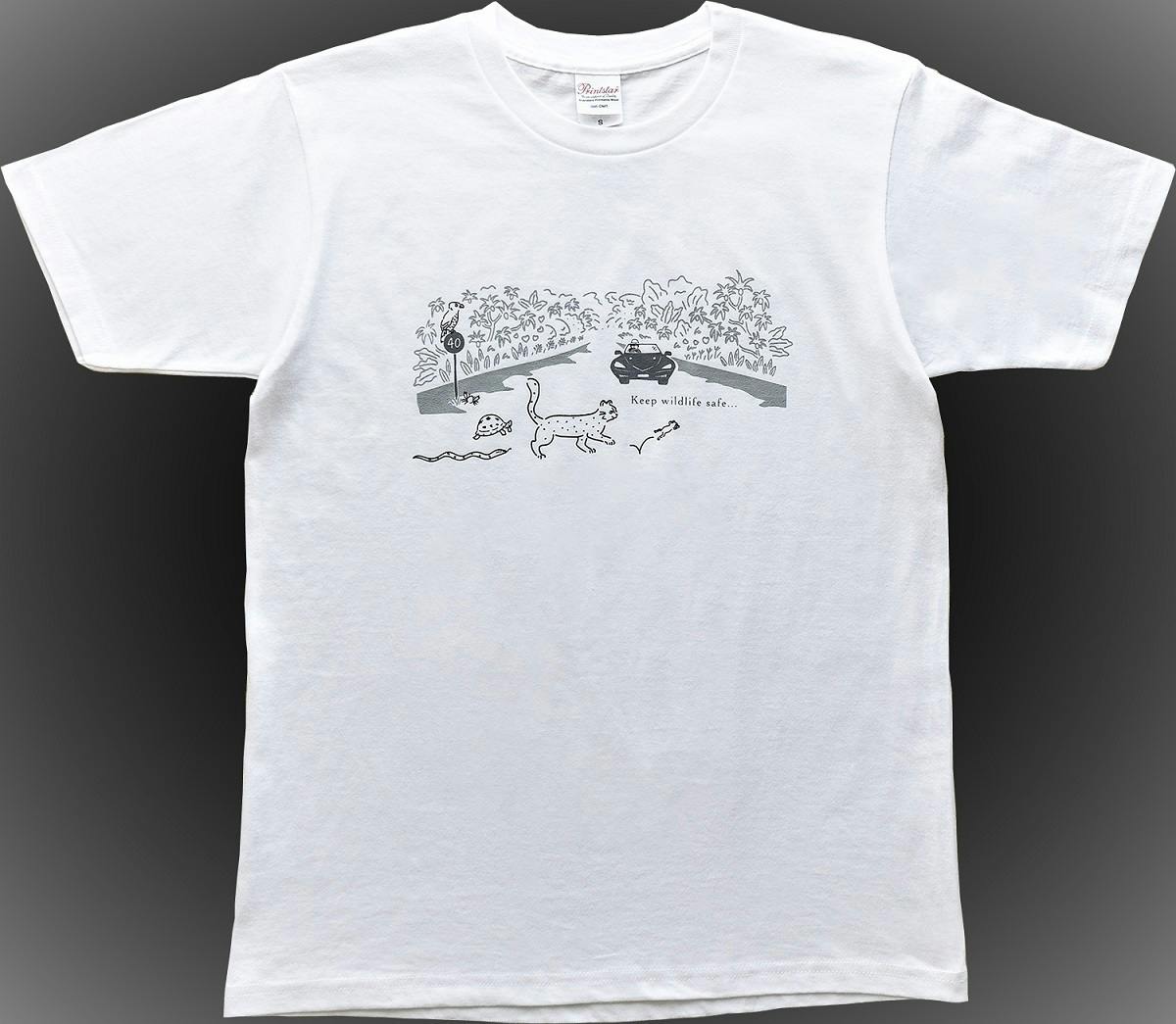 「ヤマネコ横断中Tシャツ」限定色(黒・白)¥3500 を作り、先行販売します