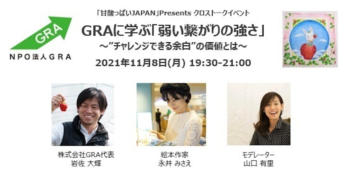 「甘酸っぱいJAPAN」は、ミガキイチゴを生み出した GRA のストーリーを受け継いで2021年に誕生した、自由参加型のコミュニティです。 (公開Facebookグループはこちら)