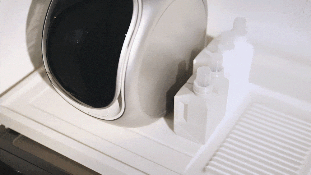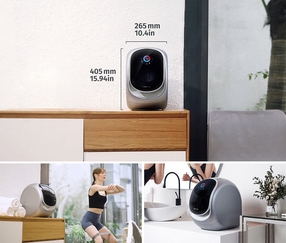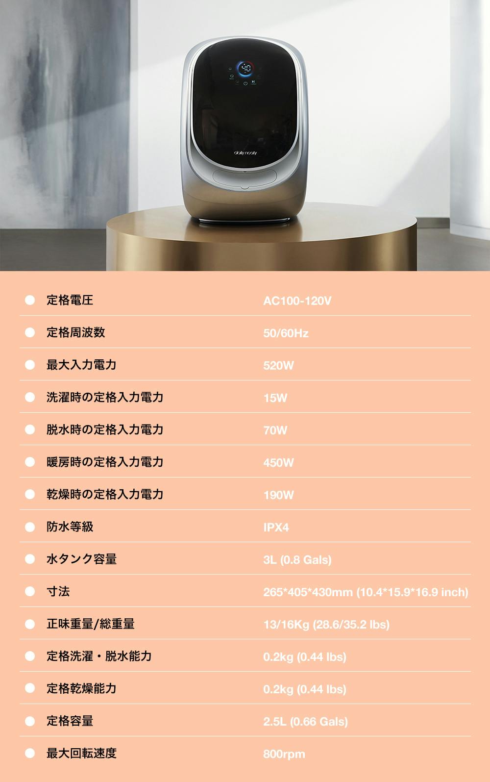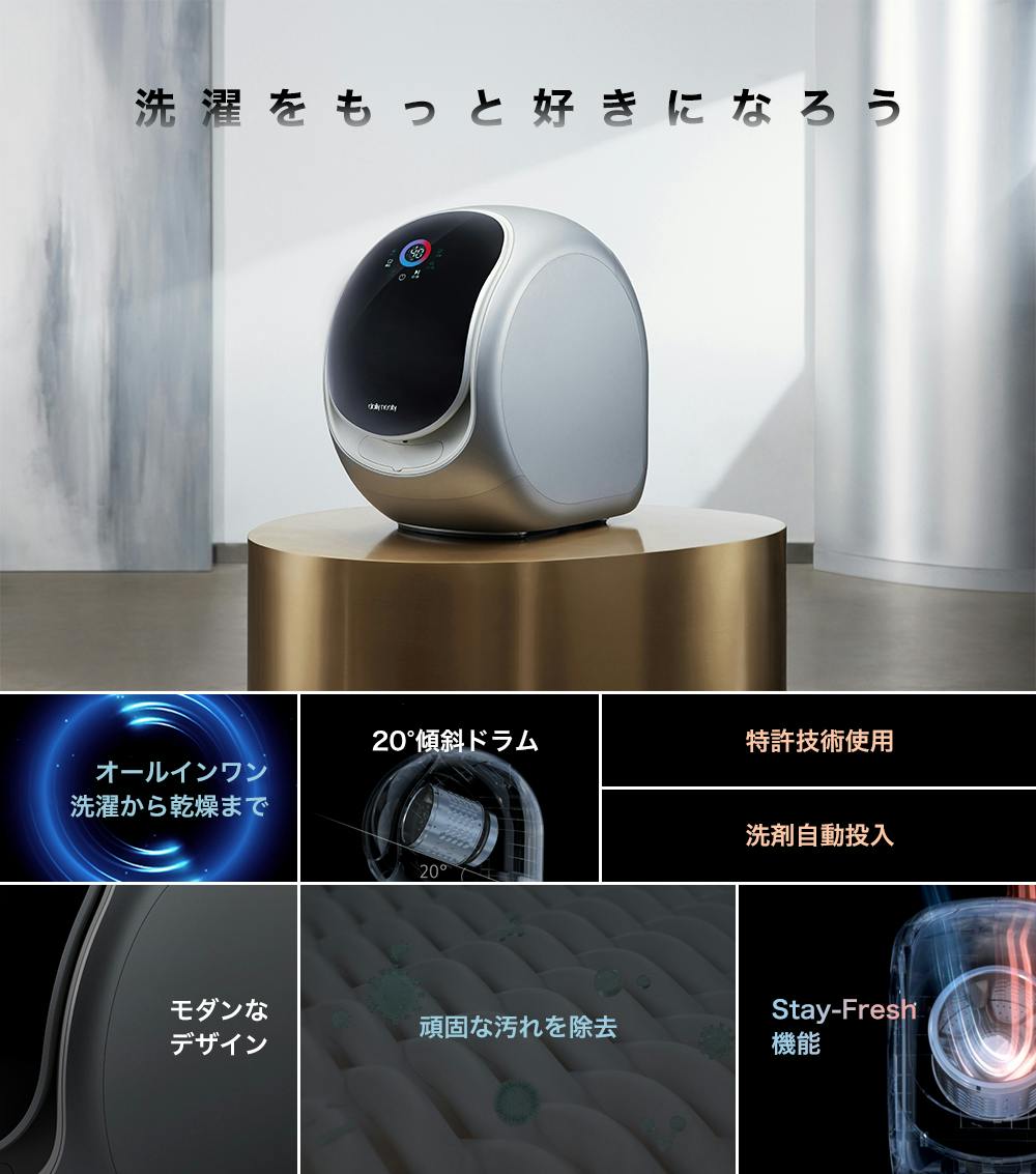 専用の洗濯洗剤が自動投入され、リビングにも置ける超小型ボディ、超静音設計。