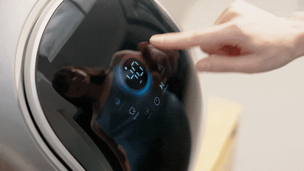 独自の自動縦型リフティングドアにより、洗濯物の出し入れが簡単です。フルタッチLEDスクリーンを備えており、4つのモードから洗濯方法を決定できるため、操作も直感的でわかりやすくなっています。内部にはインテリジェントライトが付いているため、いつでも洗濯中の衣服の状態を確認できます。色が付いたリングライトで洗濯機の現在の状態を確認できるので、それが洗濯機に近未来的な雰囲気を与えています。